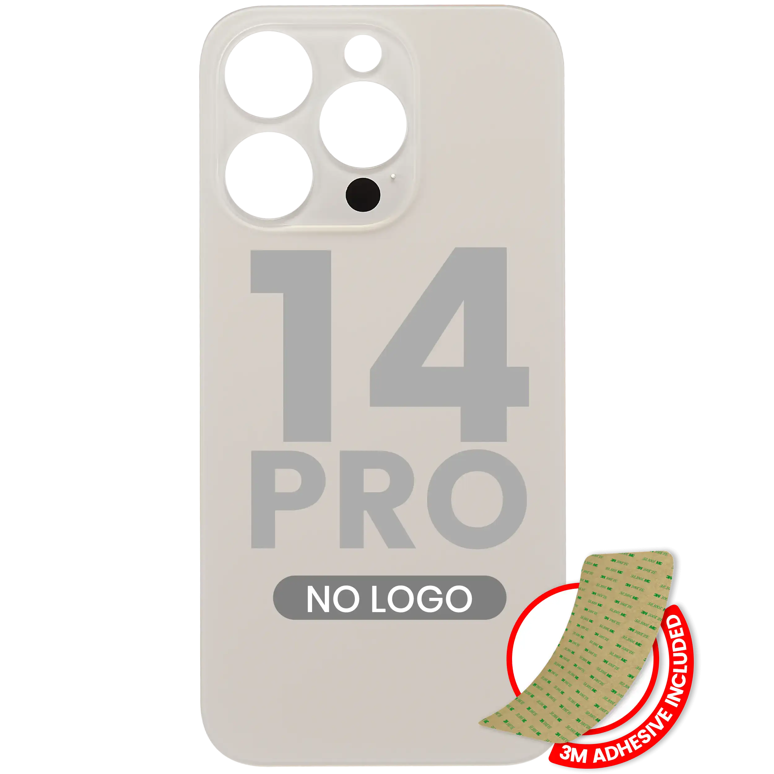 • High quality, Back Glass with 3M adhesive for iPhone 14 Pro (No Logo / Large Camera Hole) (Gold).