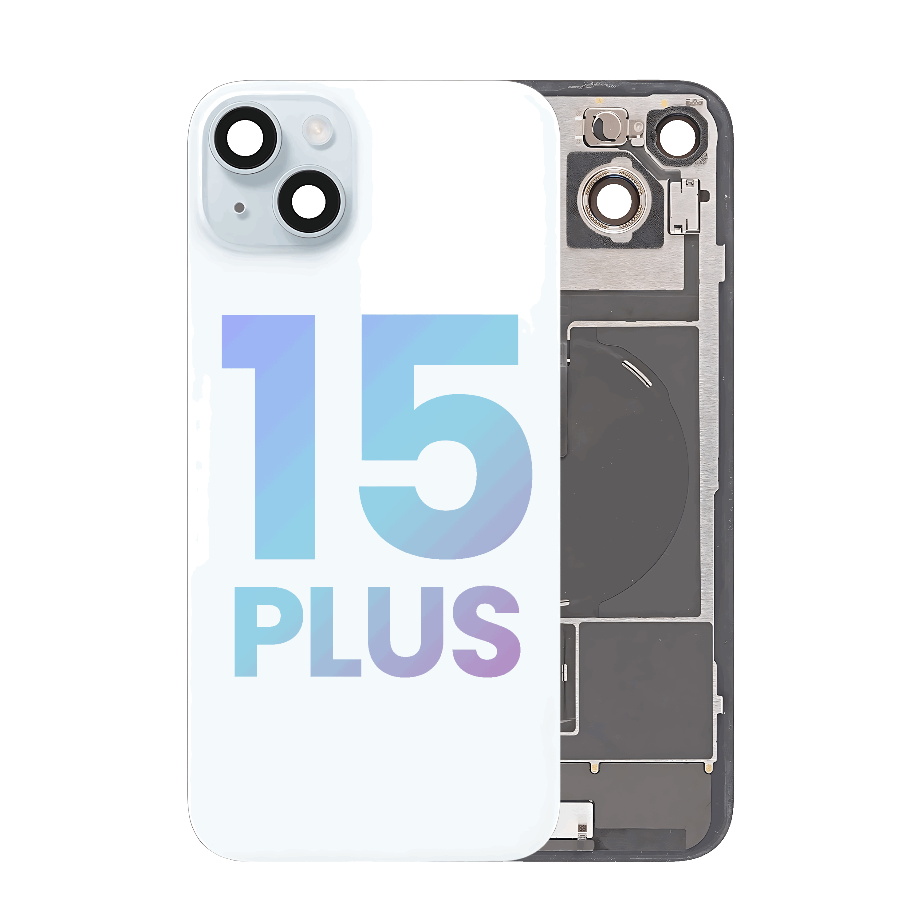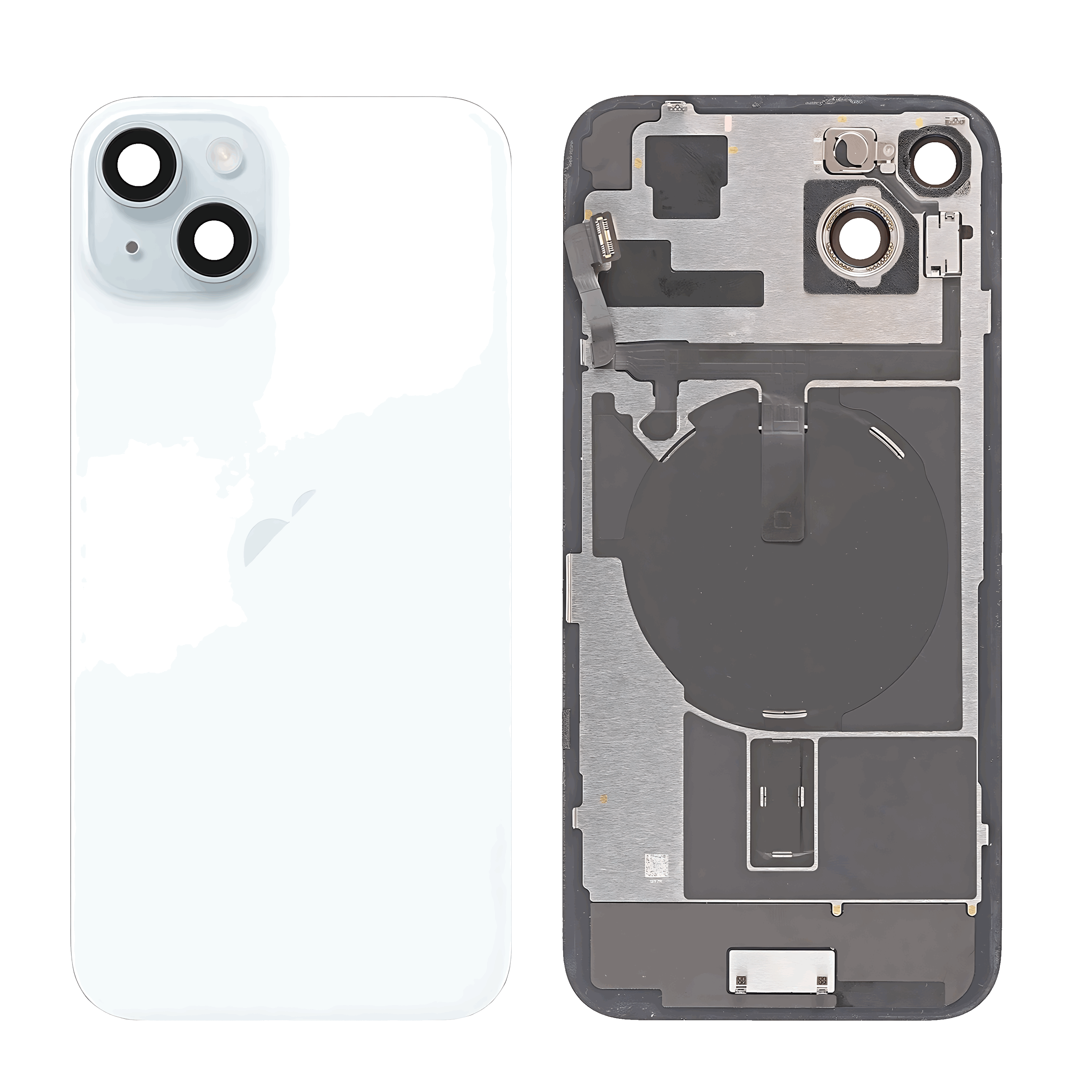 Back Glass With Steel Plate With Wireless NFC Charging MagSafe Magnet & Flashlight Flex IPhone 15 Plus (Service Pack) (Blue)