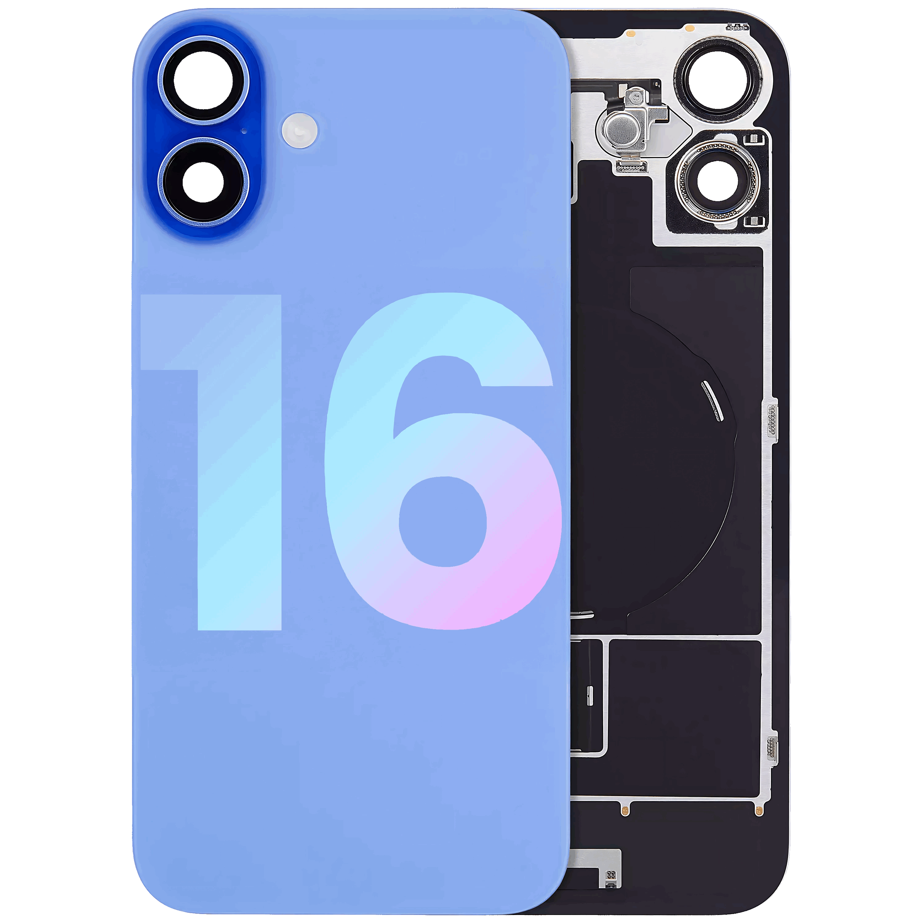 Back Glass With Steel Plate With Wireless NFC Charging MagSafe Magnet & Flashlight Flex iPhone 16 (Service Pack) (Ultramarine)