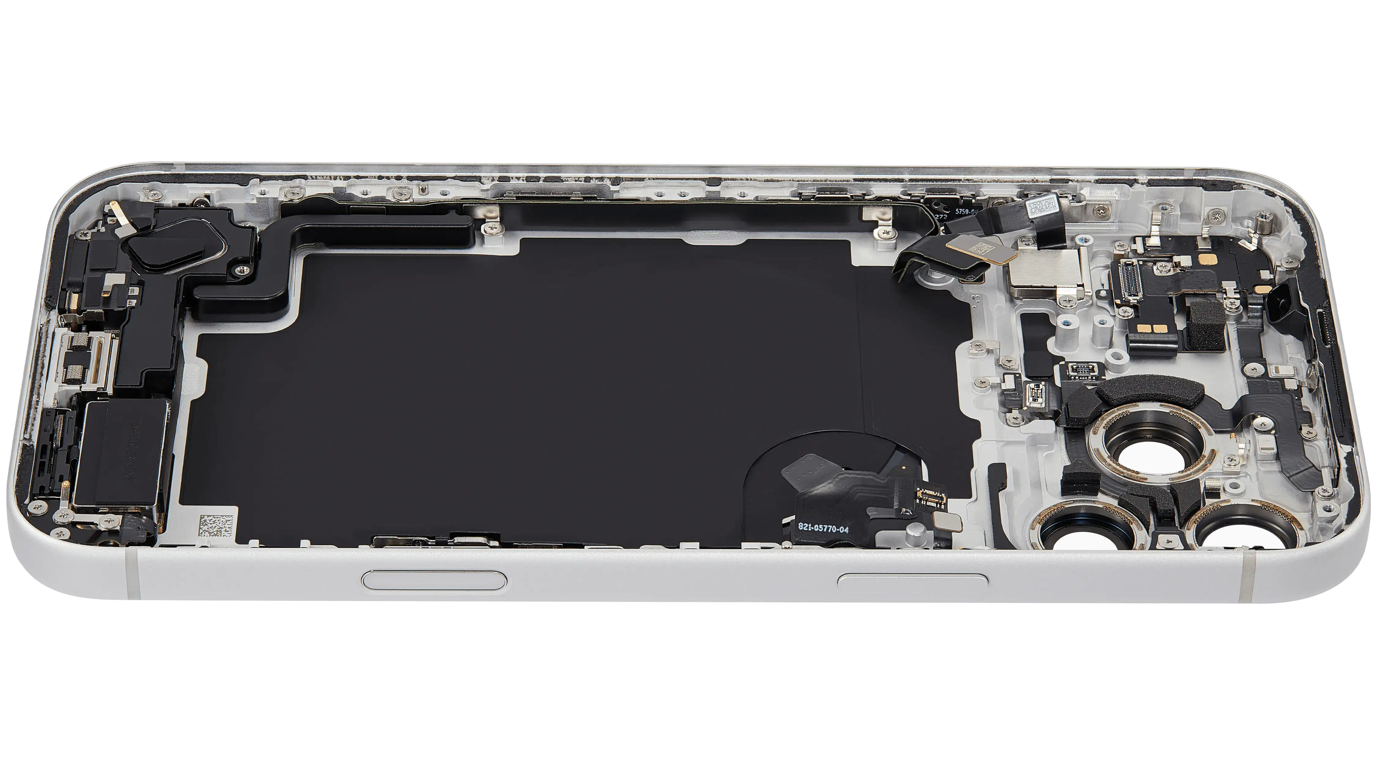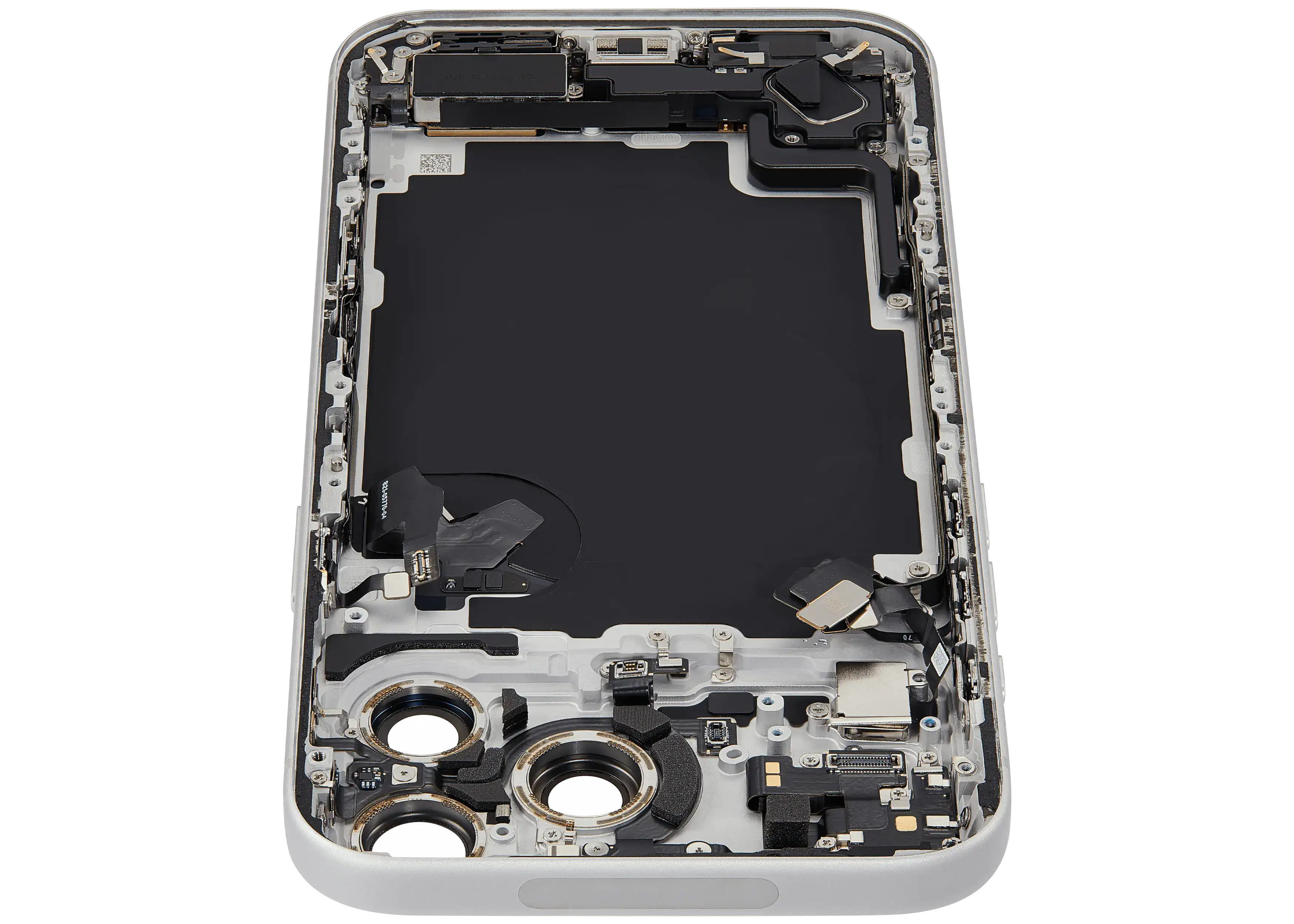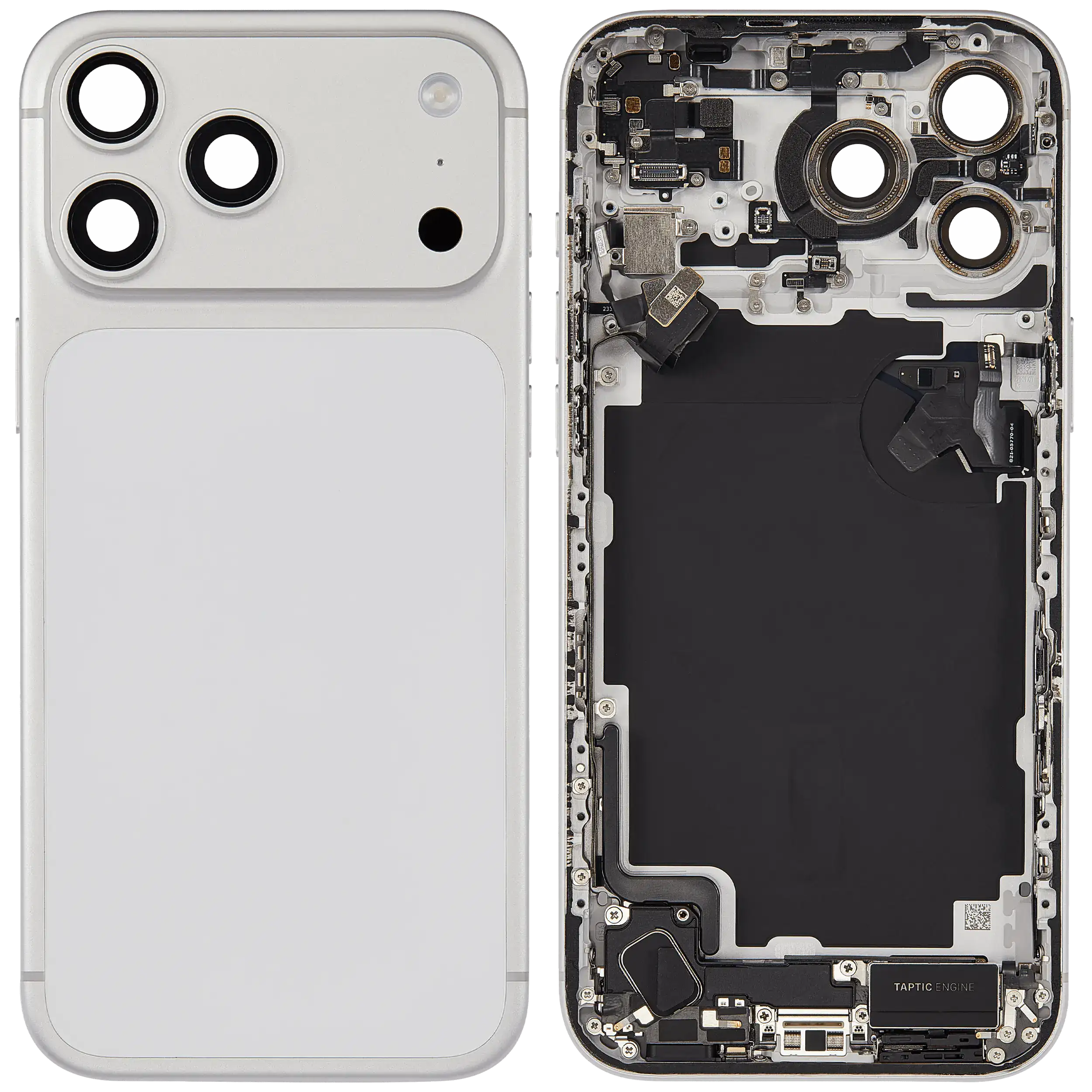Back Housing W/ Charging Port Flex & Small Parts Compatible For iPhone 17 Pro Max (US Version) (Used OEM Pull: Grade A) (Silver)