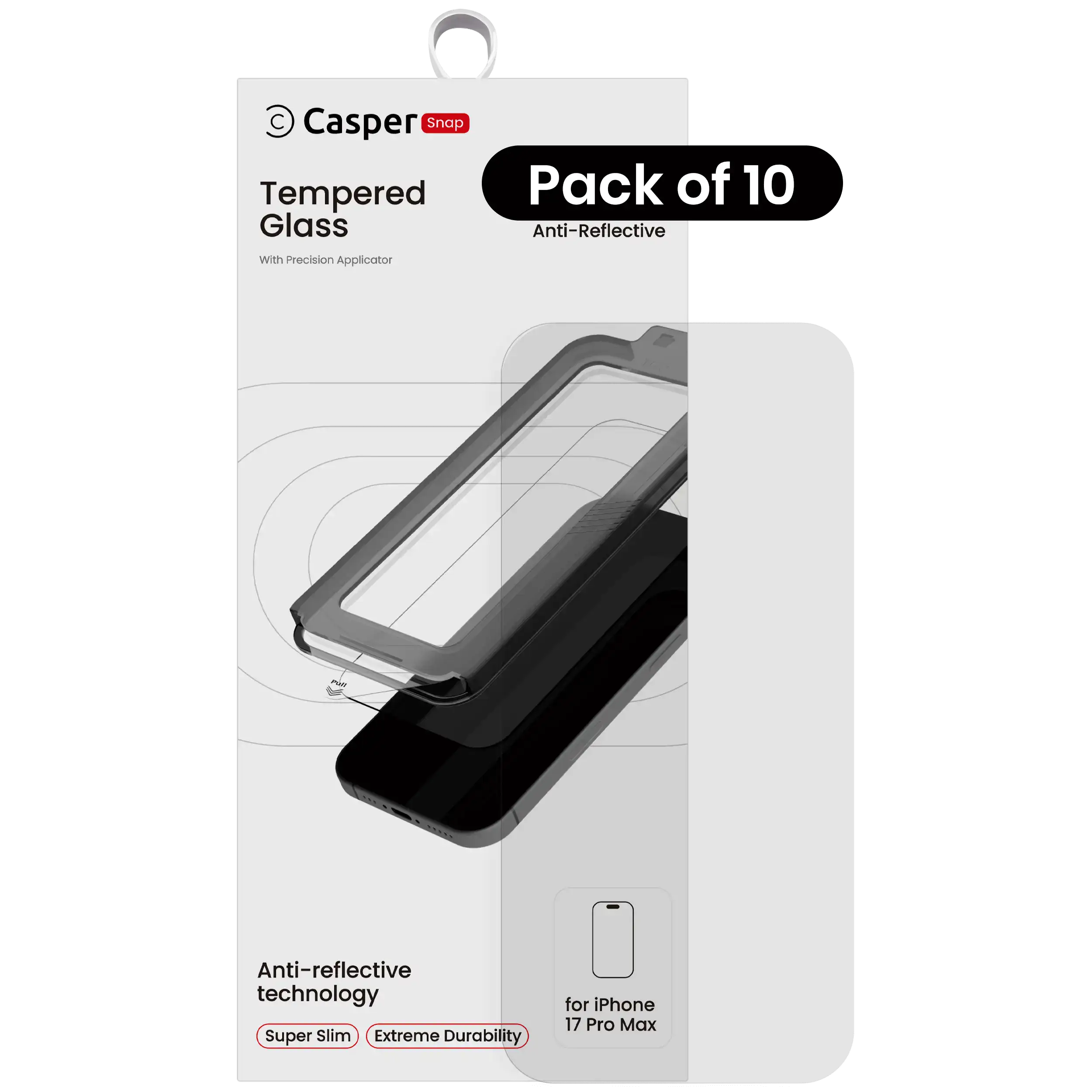 Casper Snap Tempered Glass Compatible For iPhone 17 Pro Max (10 Pack) (AR Clear)
