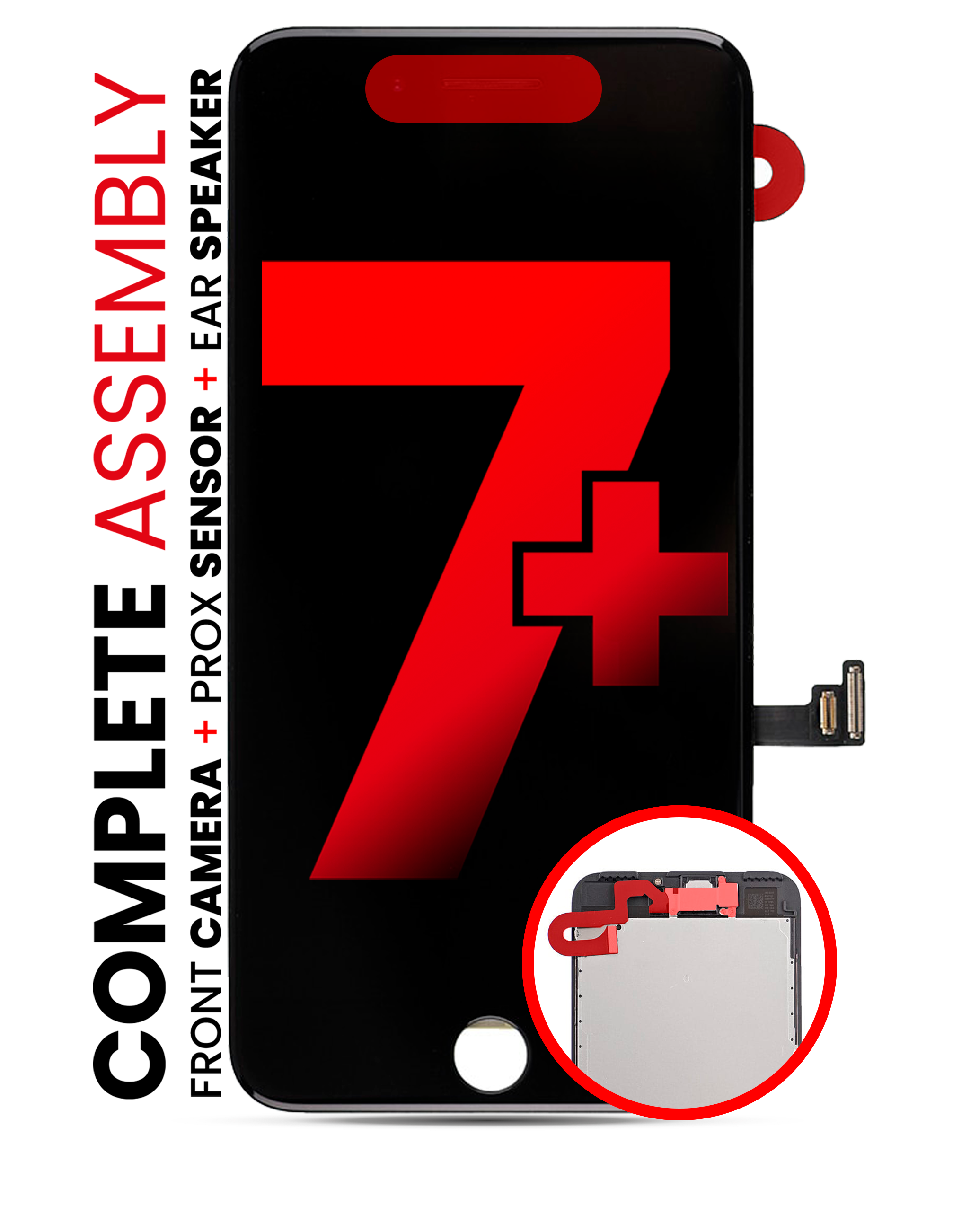 Complete LCD Assembly For iPhone 7 Plus (With Front Camera: Prox Sensor & Ear Speaker) (Aftermarket Pro: XO7) (Black)