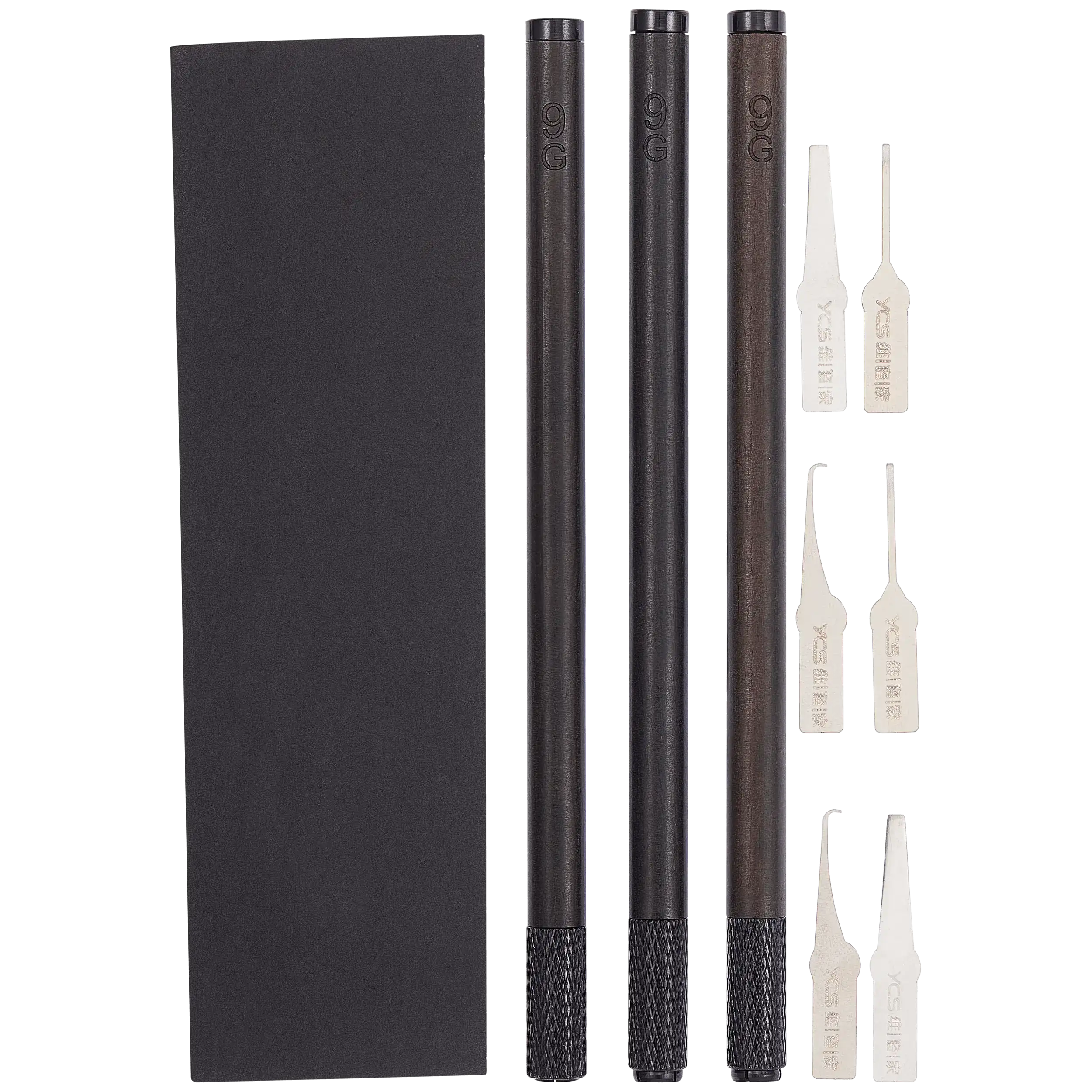 • Package includes: 1 × metal case, 3 × 9G handles, 6 × blades.