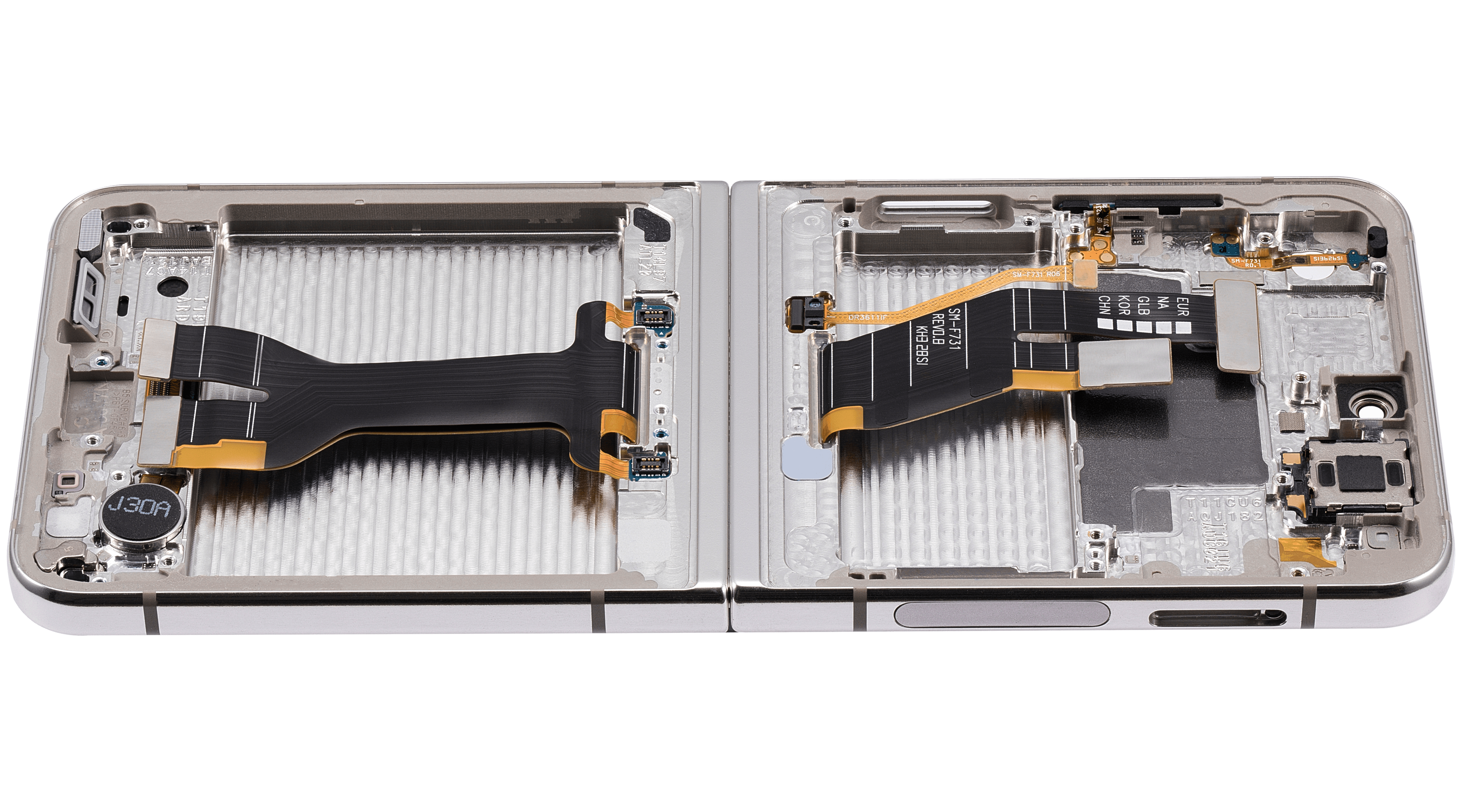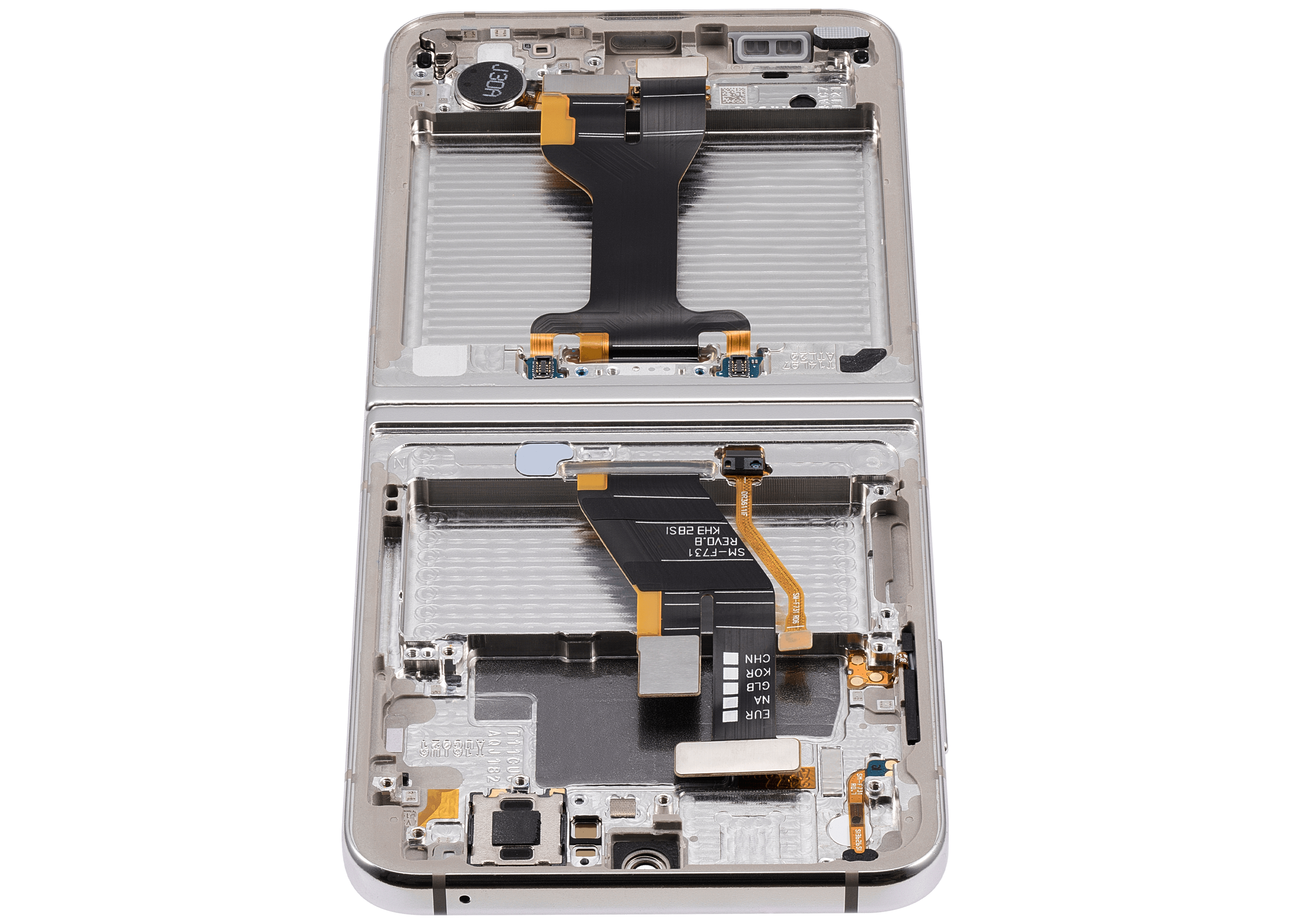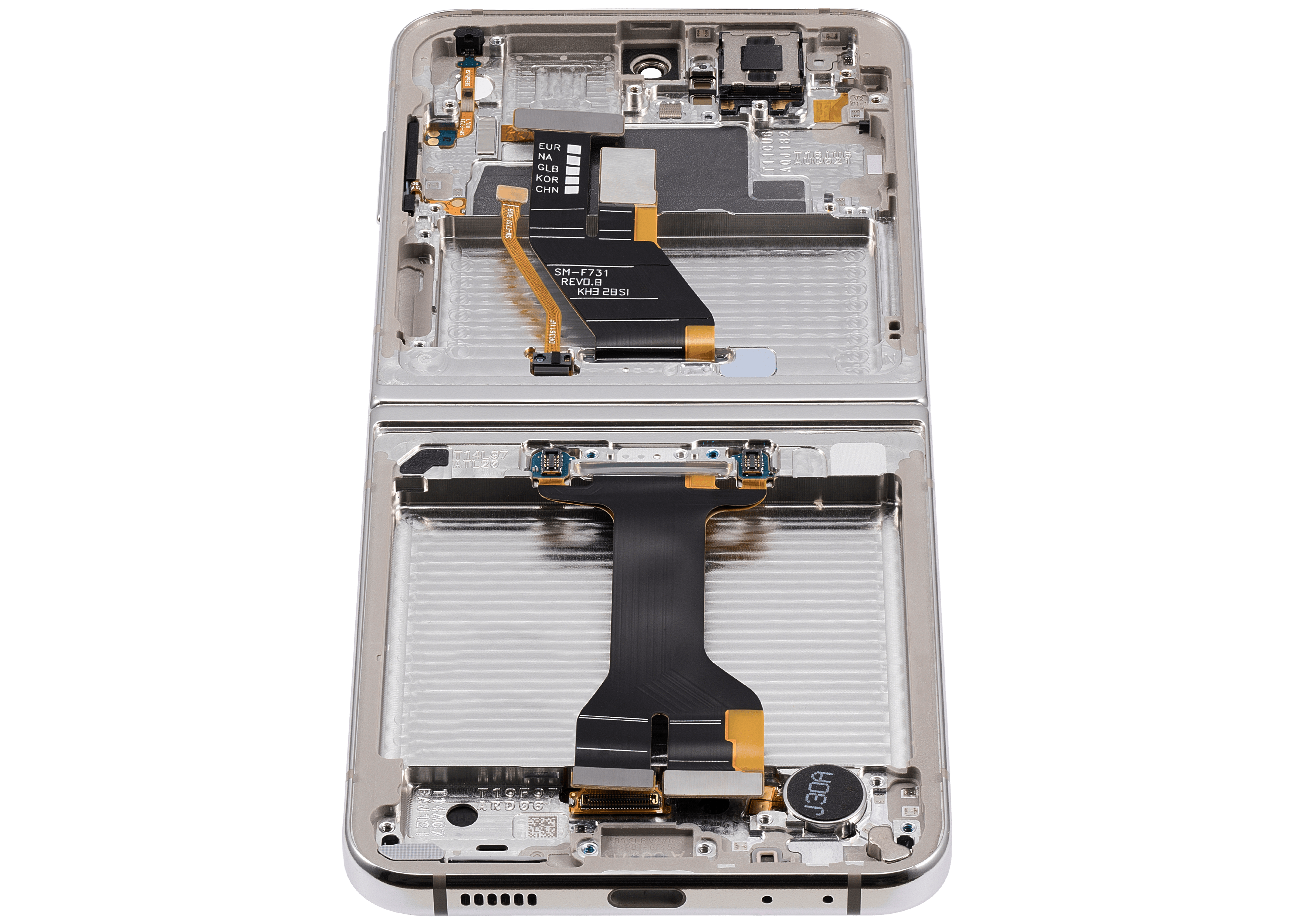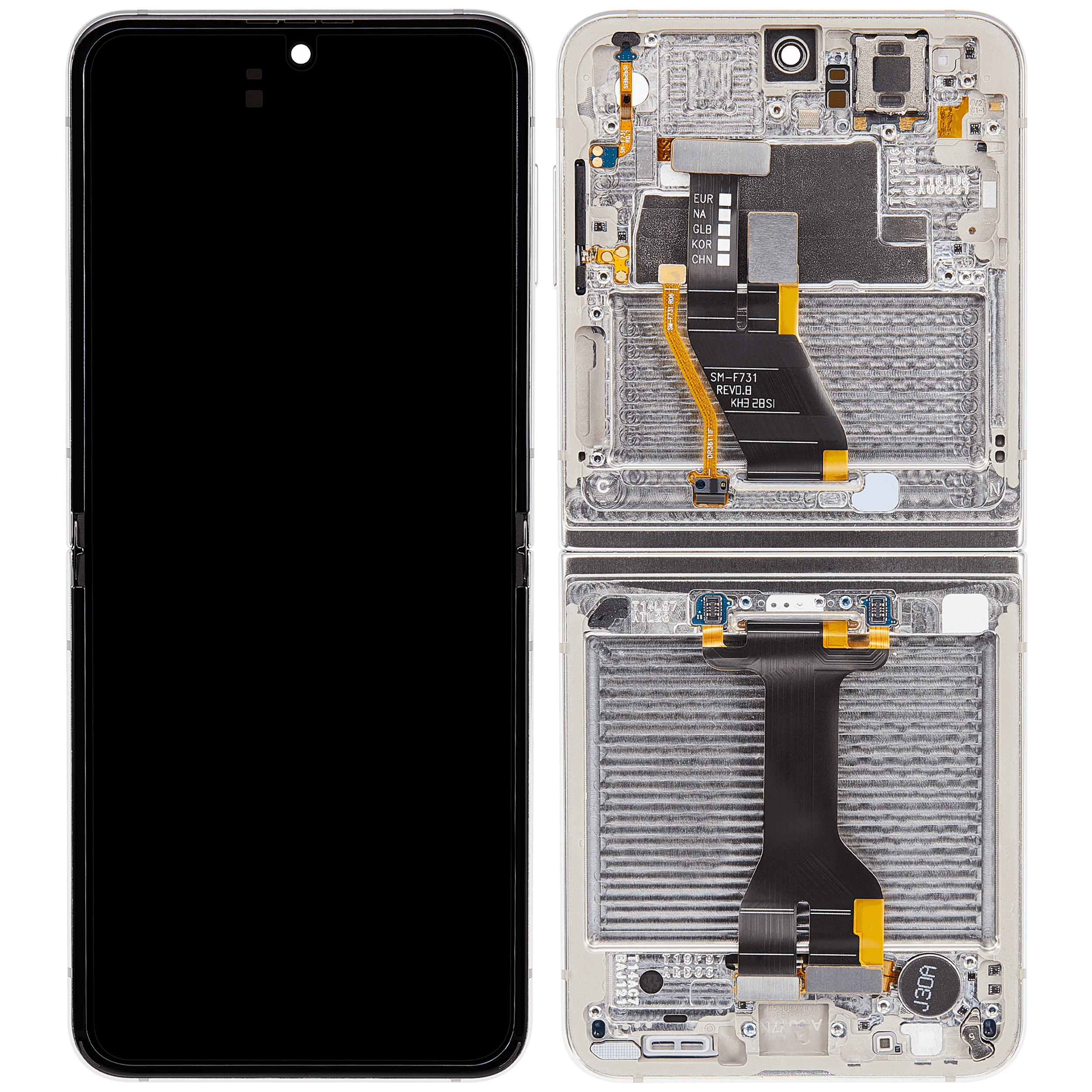 • High quality Samsung Galaxy Z Flip 5 5G inner OLED screen replacement with frame (US & International) (Refurbished) (Cream).