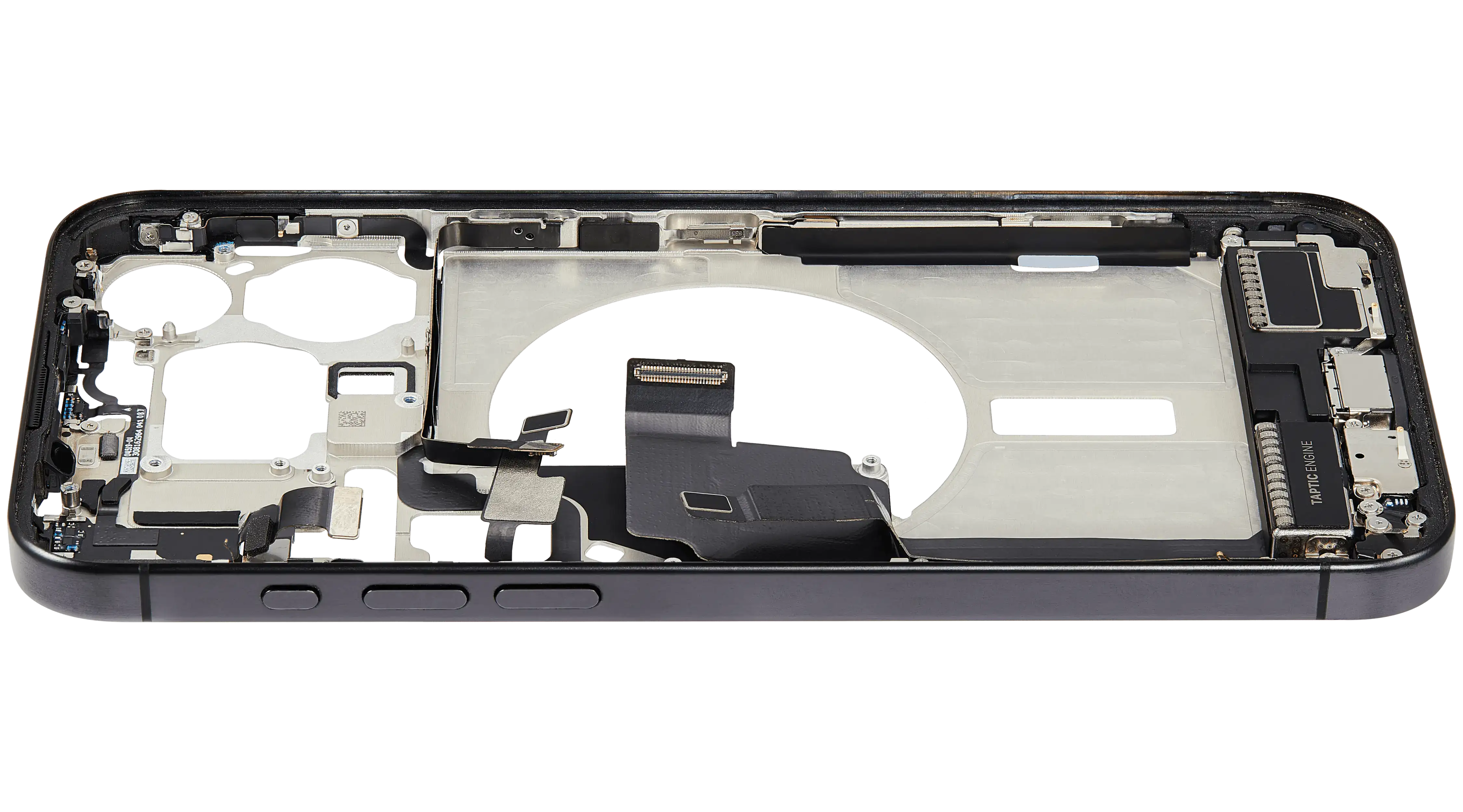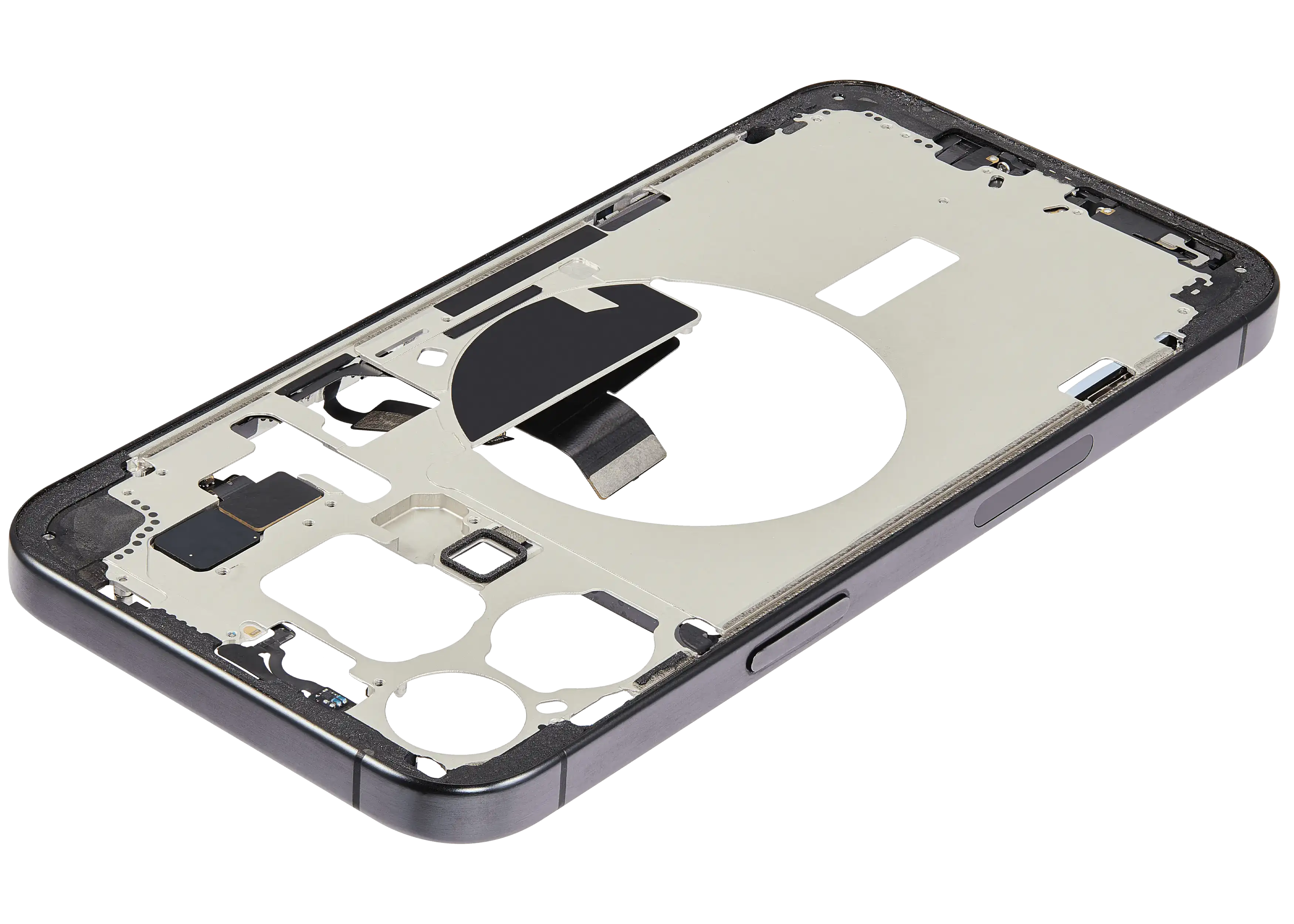 Mid-Frame Housing W/ Charging Port Flex & Small Parts For iPhone 15 Pro Max (US Version) (Used OEM Pull: Grade A) (Black Titanium)