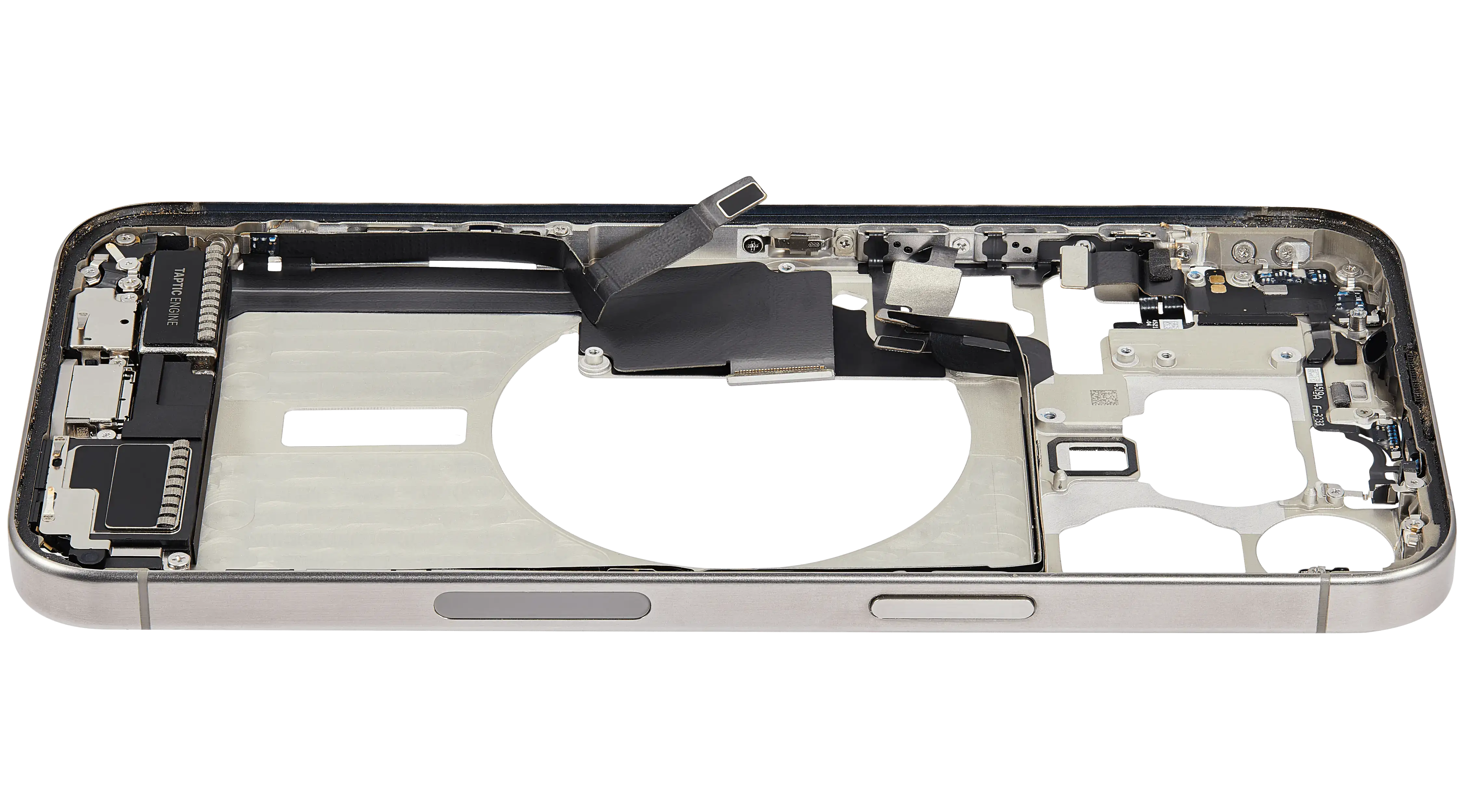Mid-Frame Housing W/ Charging Port Flex & Small Parts For iPhone 15 Pro Max (US Version) (Used OEM Pull: Grade A) (Natural Titanium)