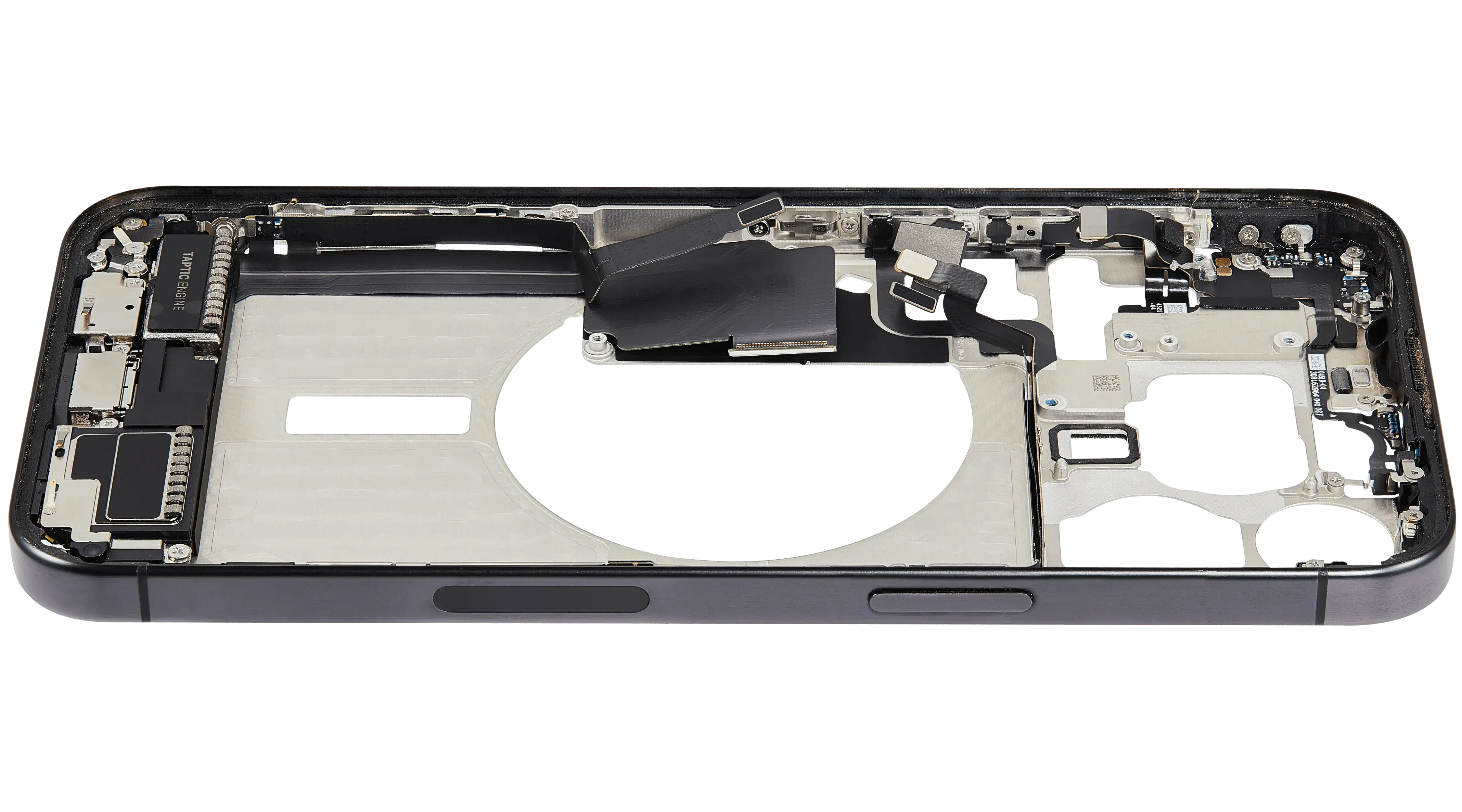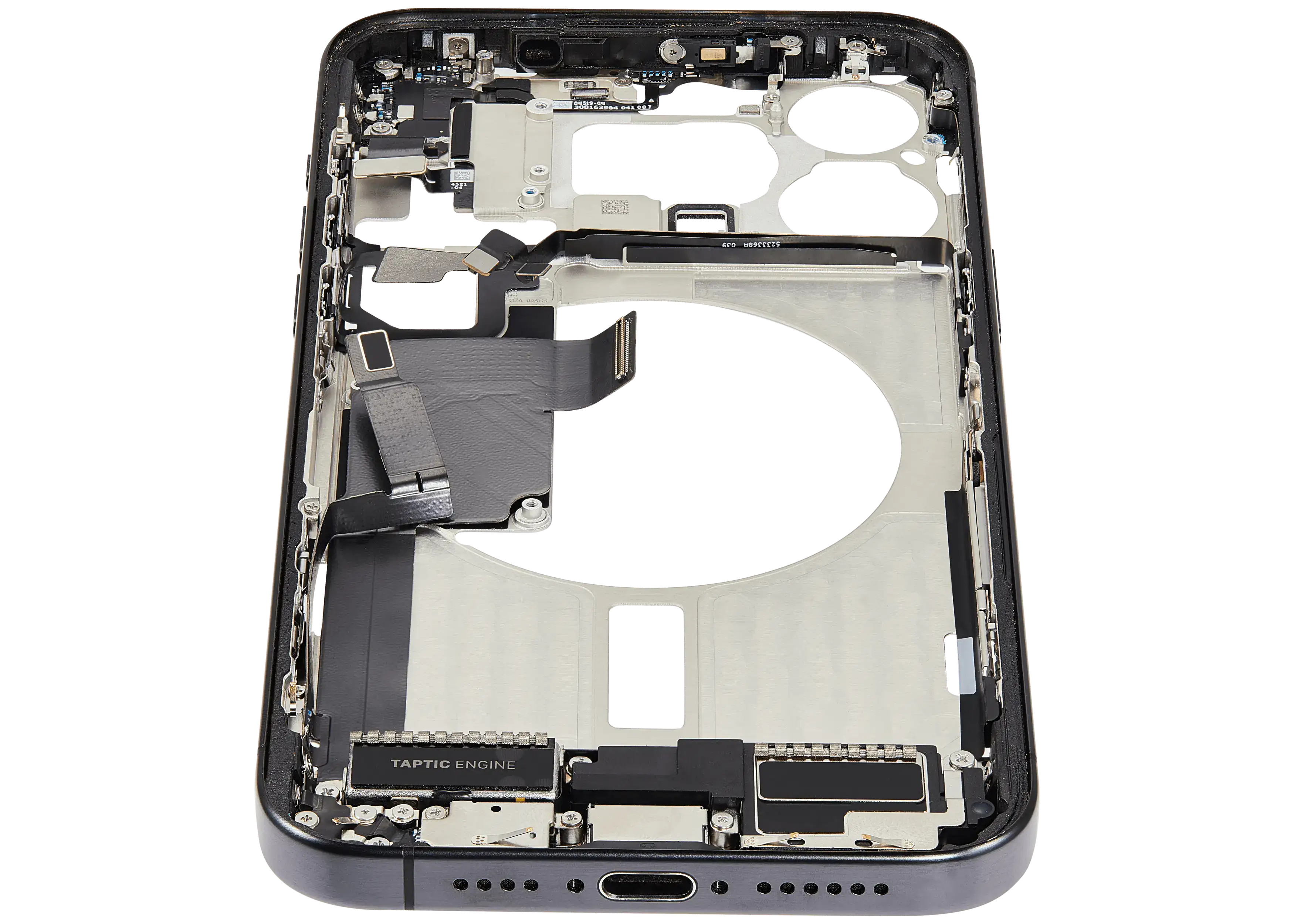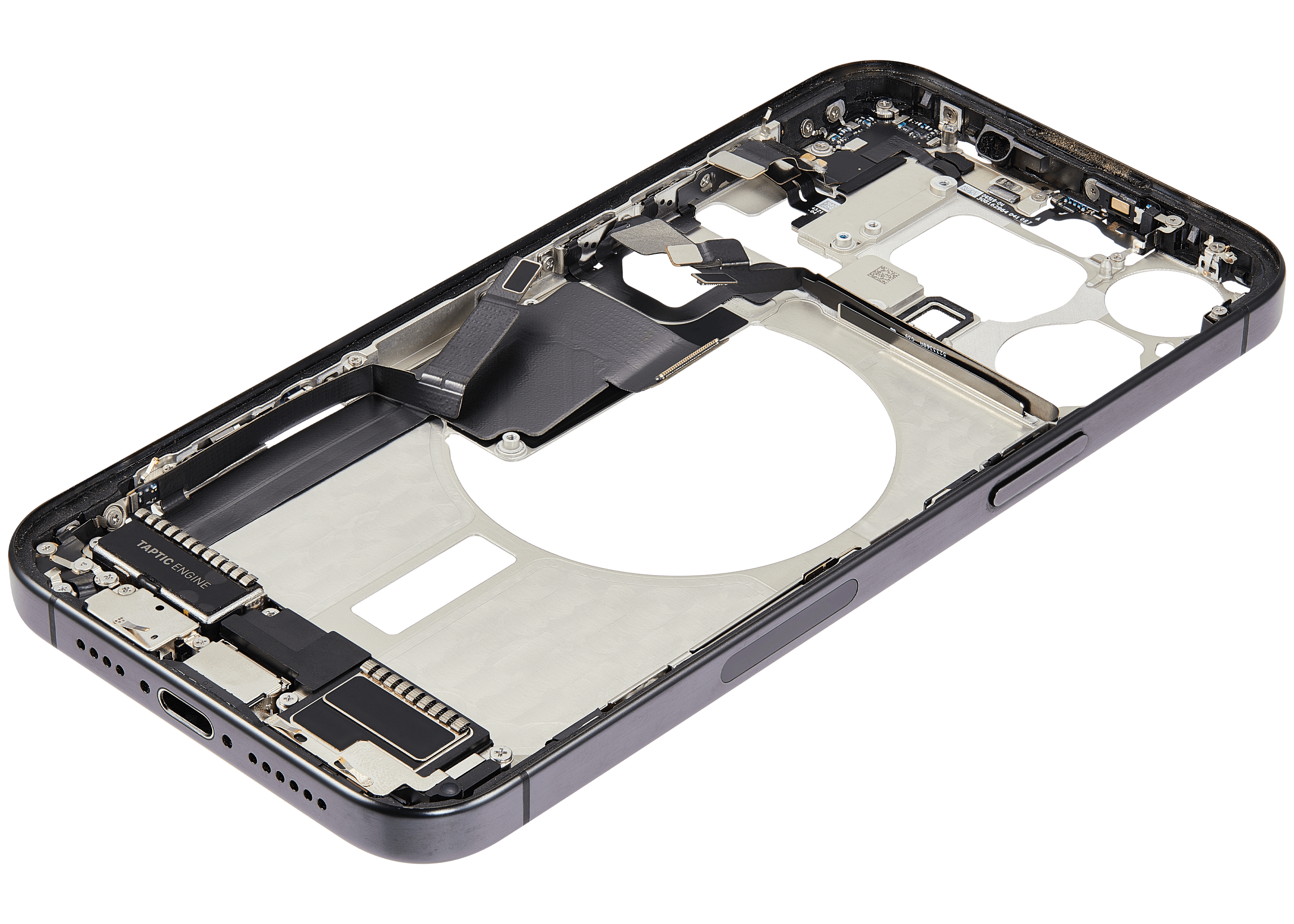 Mid-Frame Housing W/ Charging Port Flex & Small Parts For iPhone 15 Pro Max (US Version) (Used OEM Pull: Grade B) (Black Titanium)