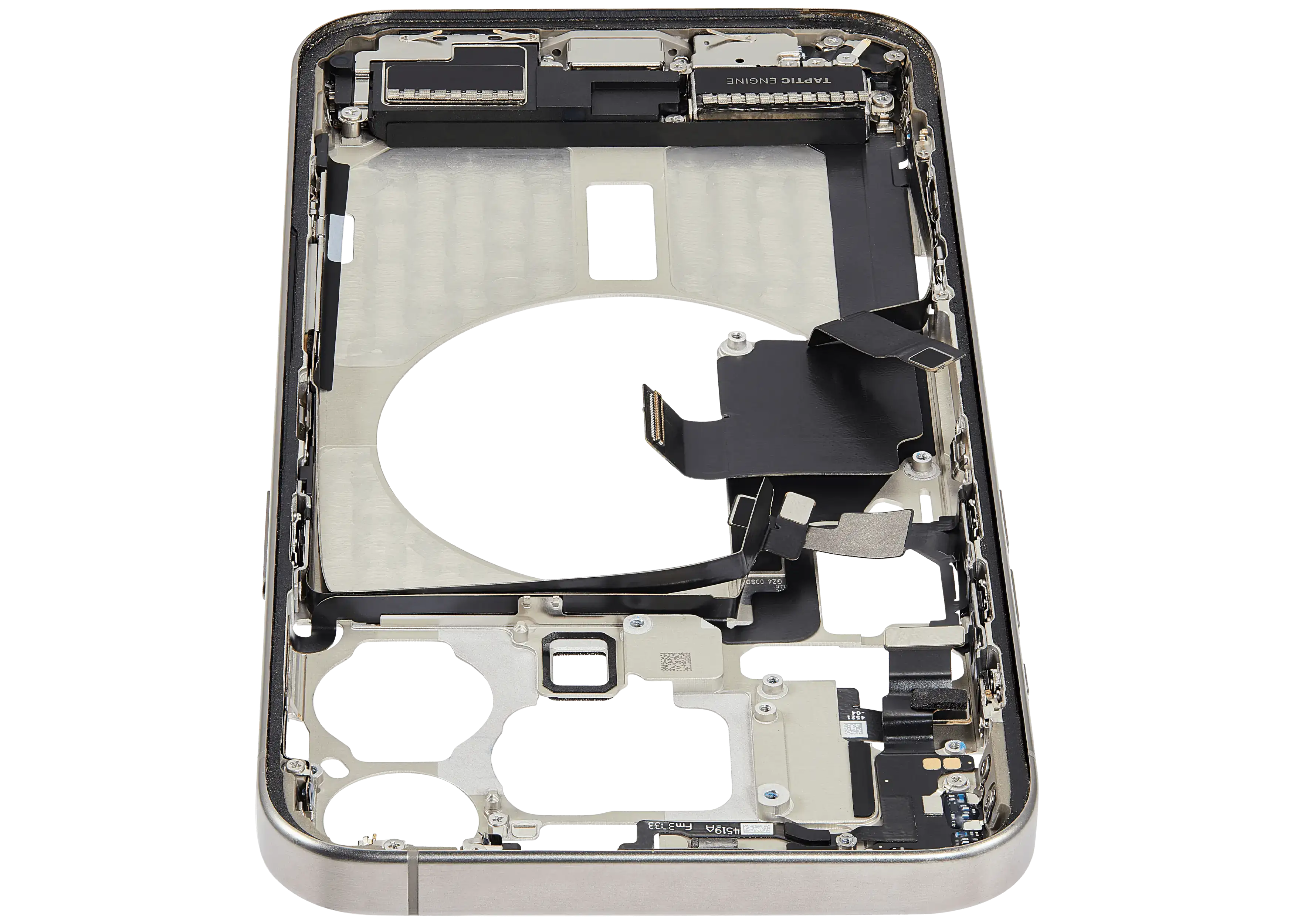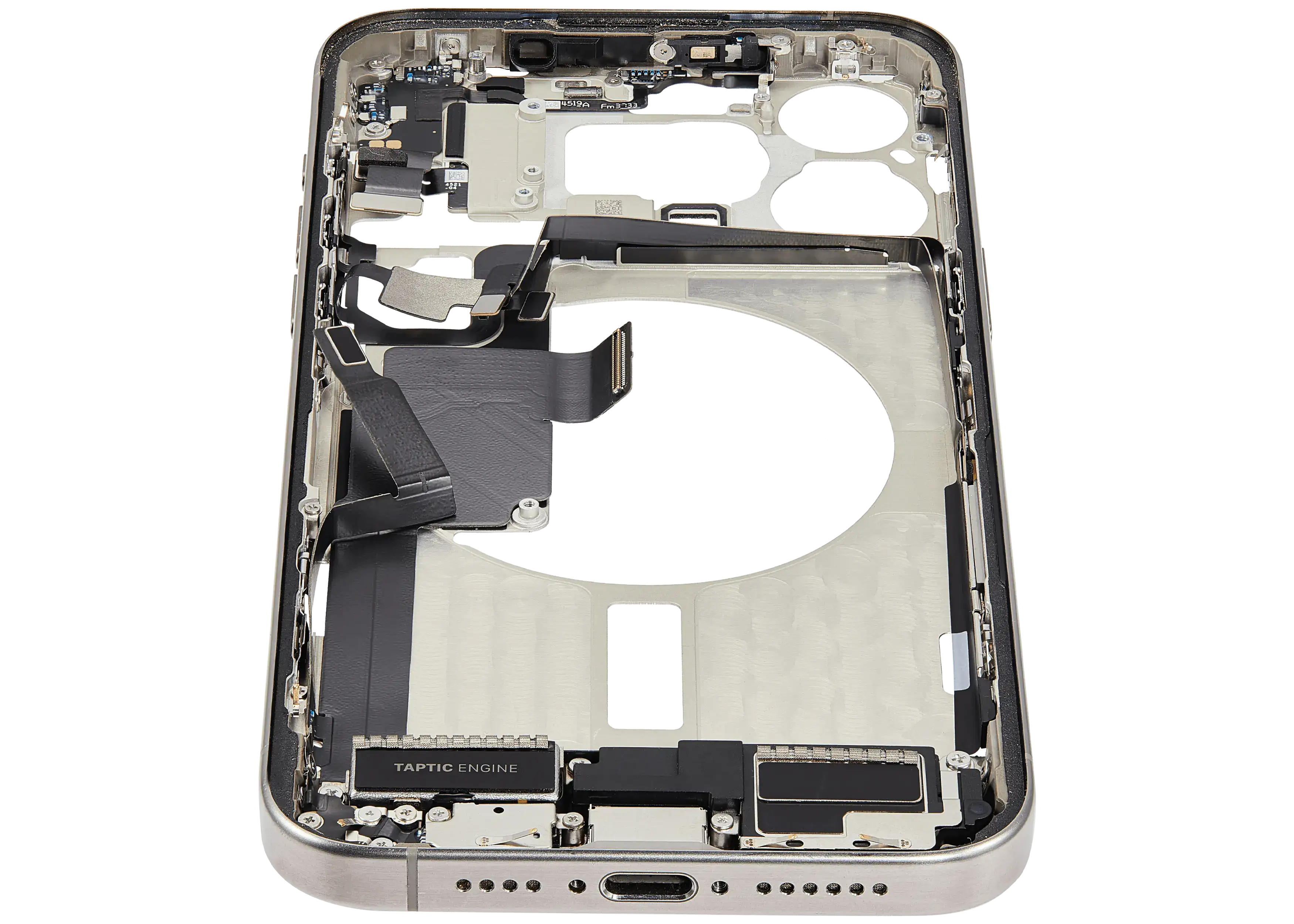Mid-Frame Housing W/ Charging Port Flex & Small Parts For iPhone 15 Pro Max (US Version) (Used OEM Pull: Grade C) (Natural Titanium)