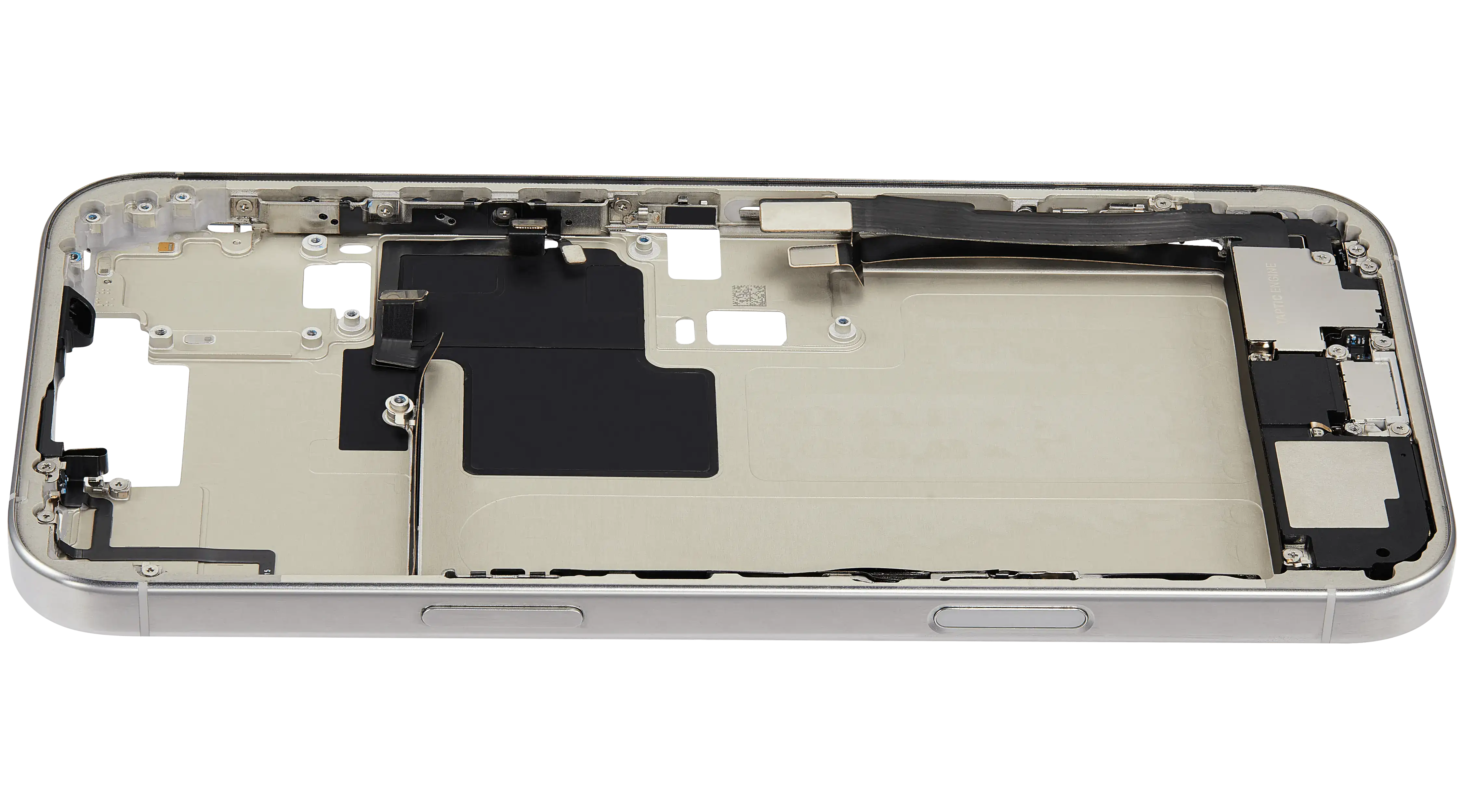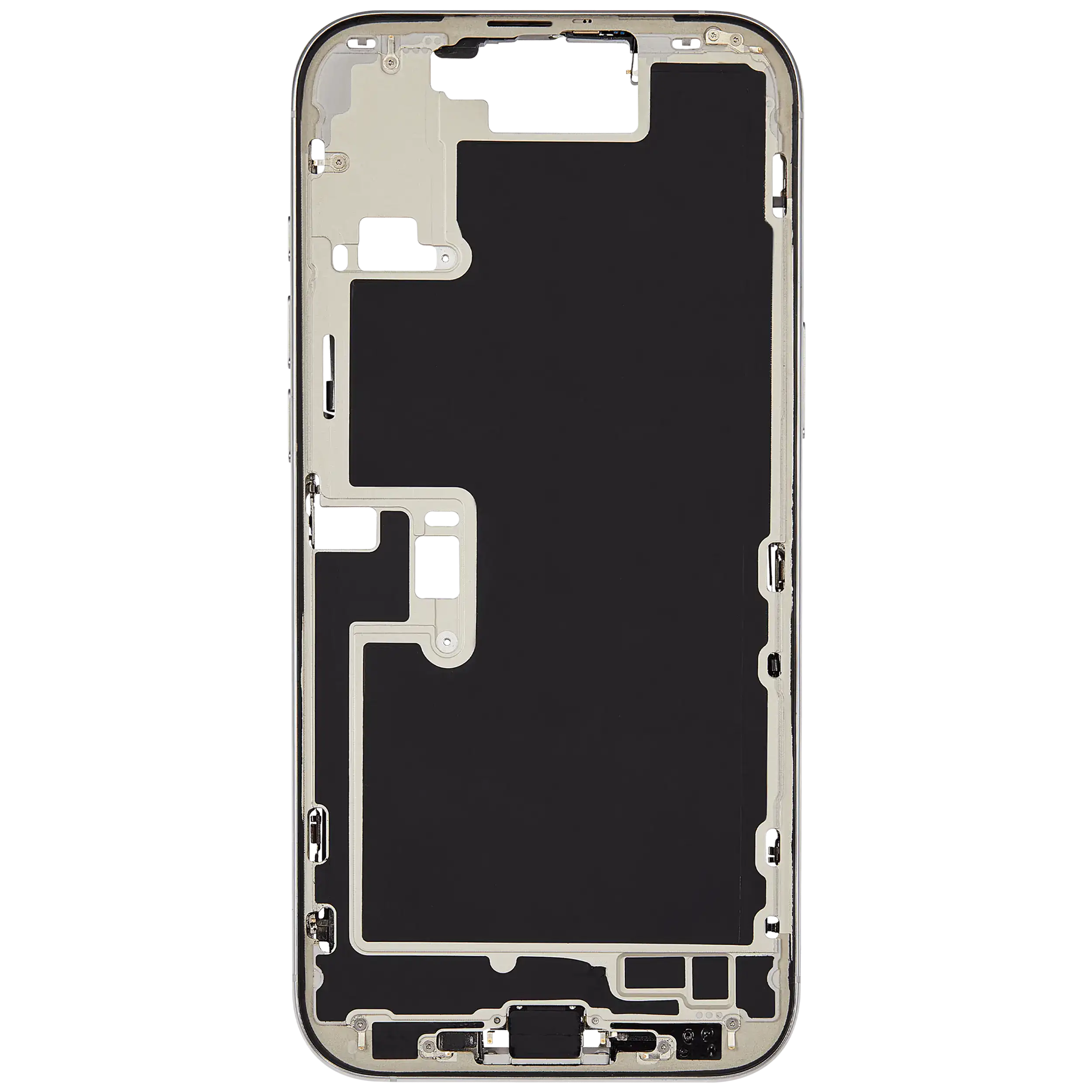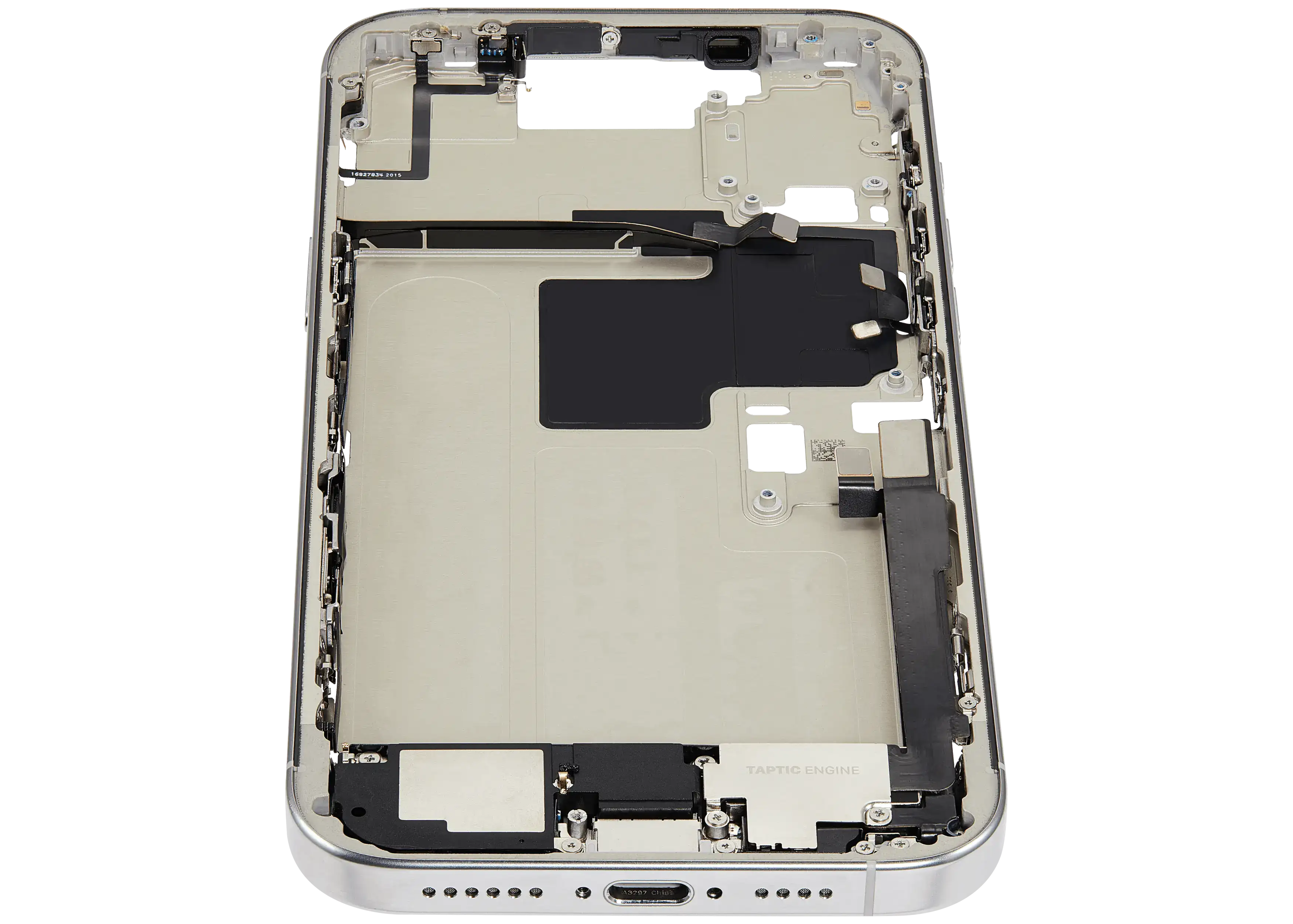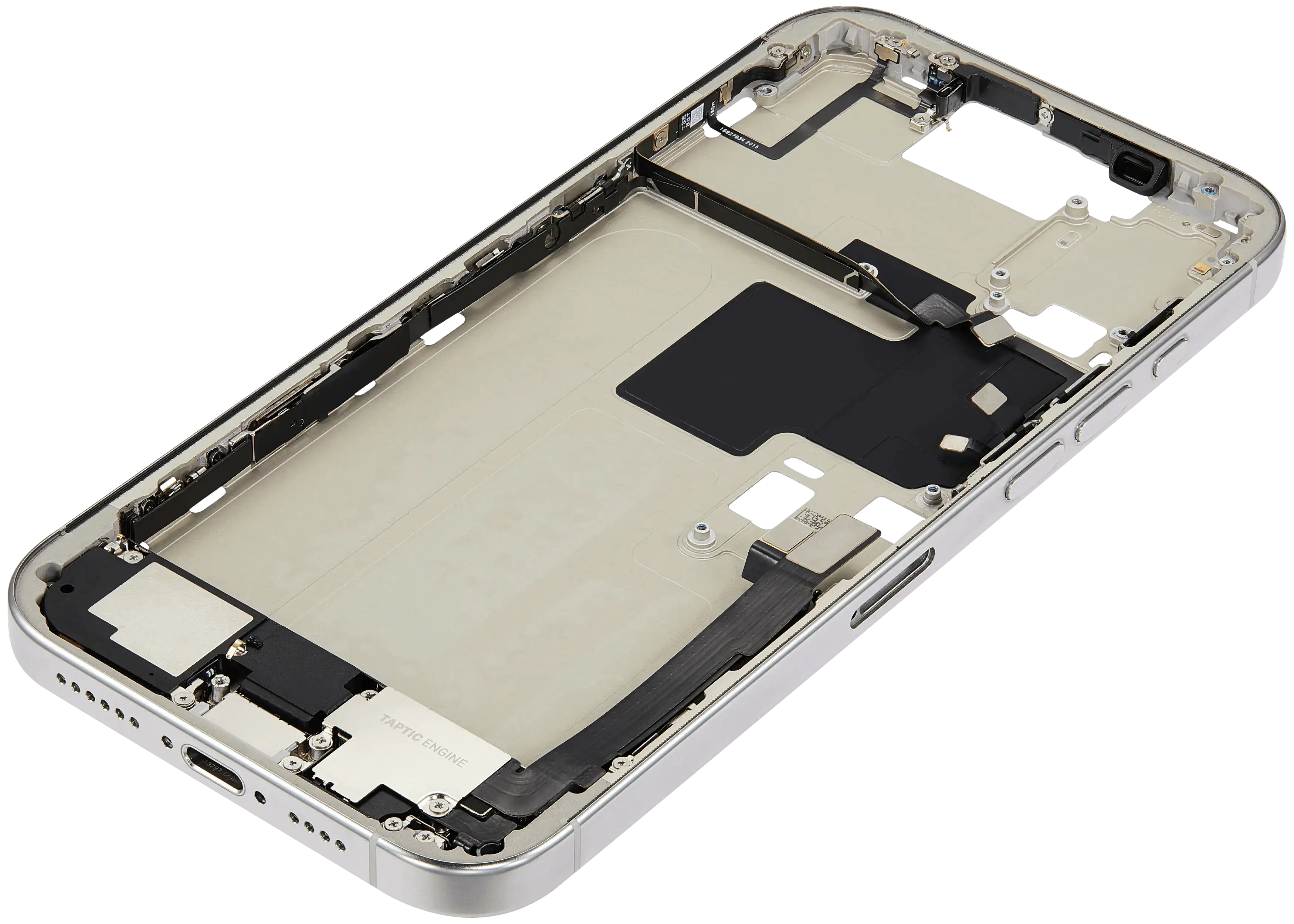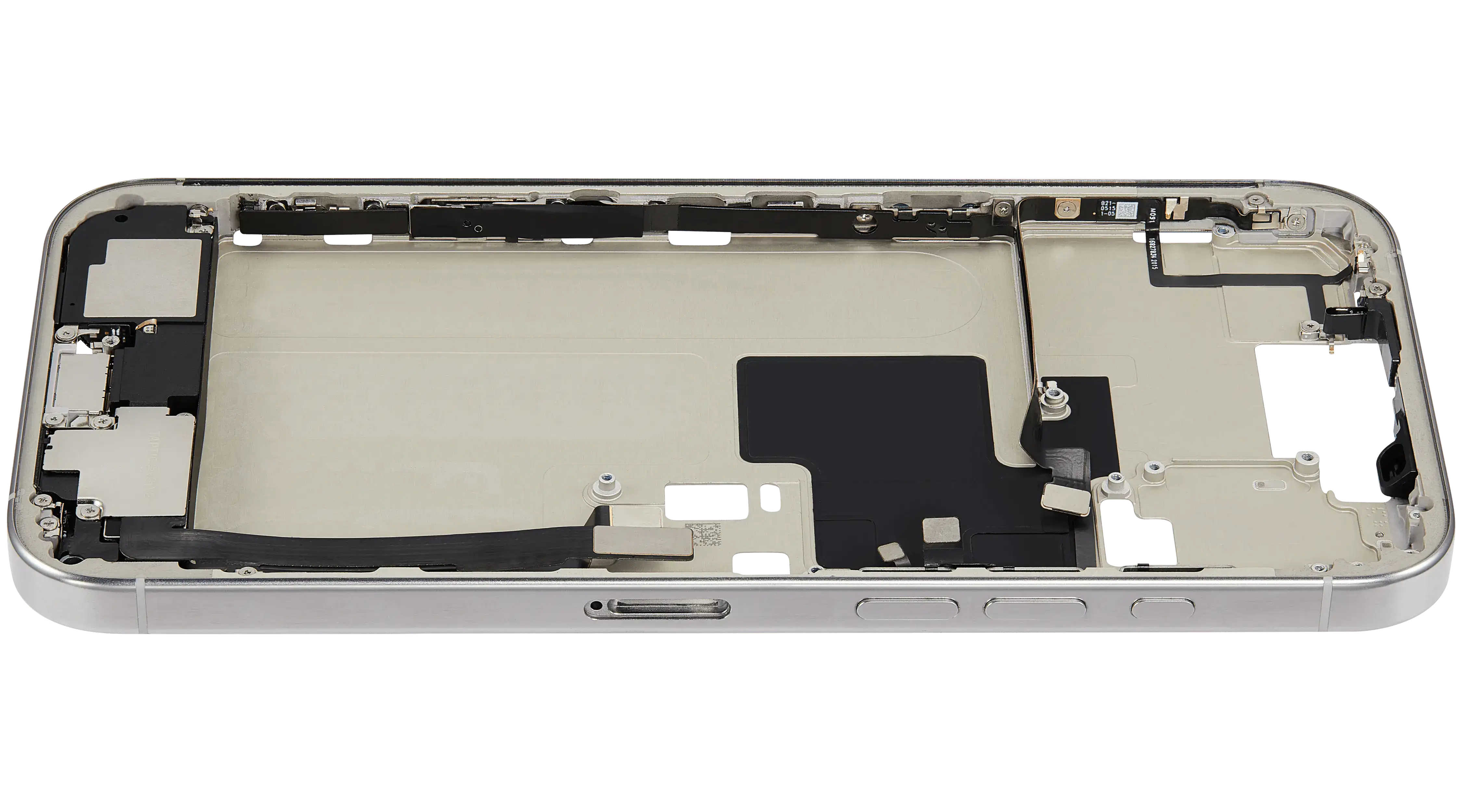 Mid-Frame Housing W/ Charging Port Flex & Small Parts For iPhone 16 Pro Max (EU / Global Version) (Used OEM Pull: Grade B) (White Titanium)