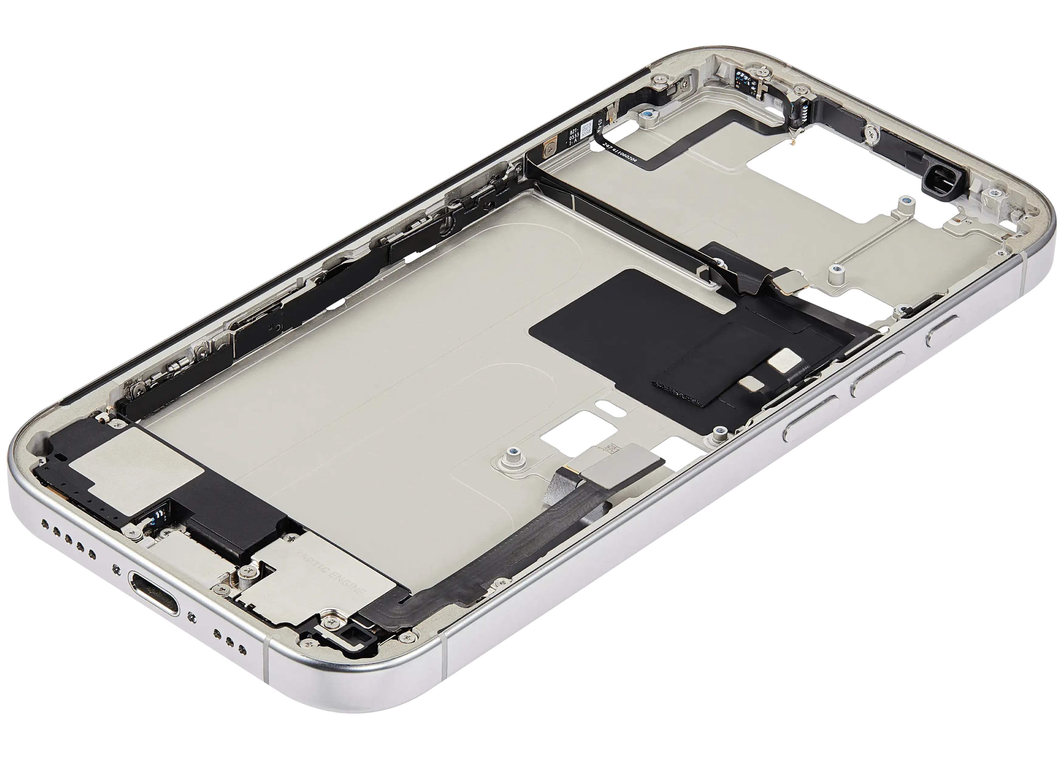 Mid-Frame Housing W/ Charging Port Flex & Small Parts For iPhone 16 Pro (US Version) (Used OEM Pull: Grade A) (White Titanium)