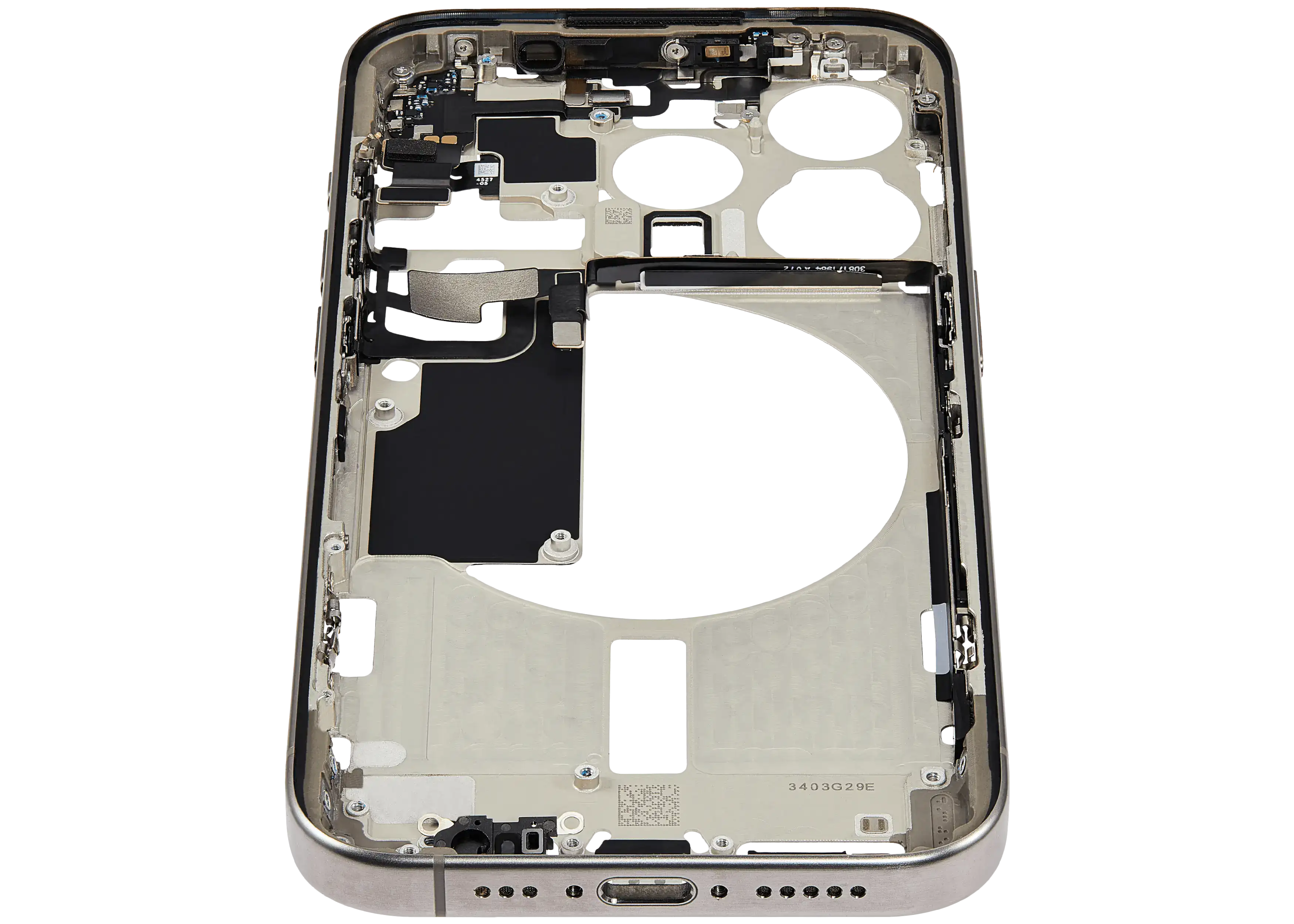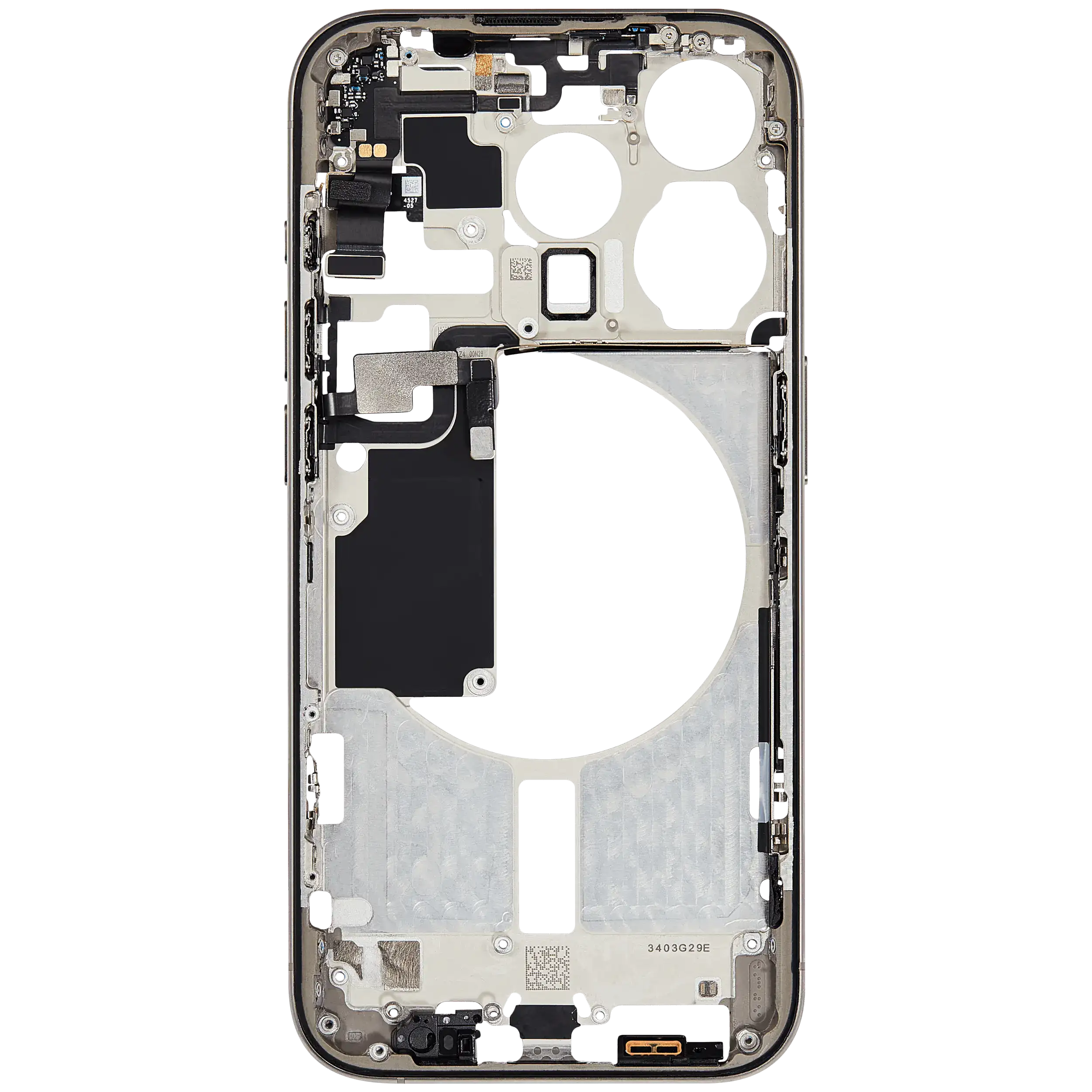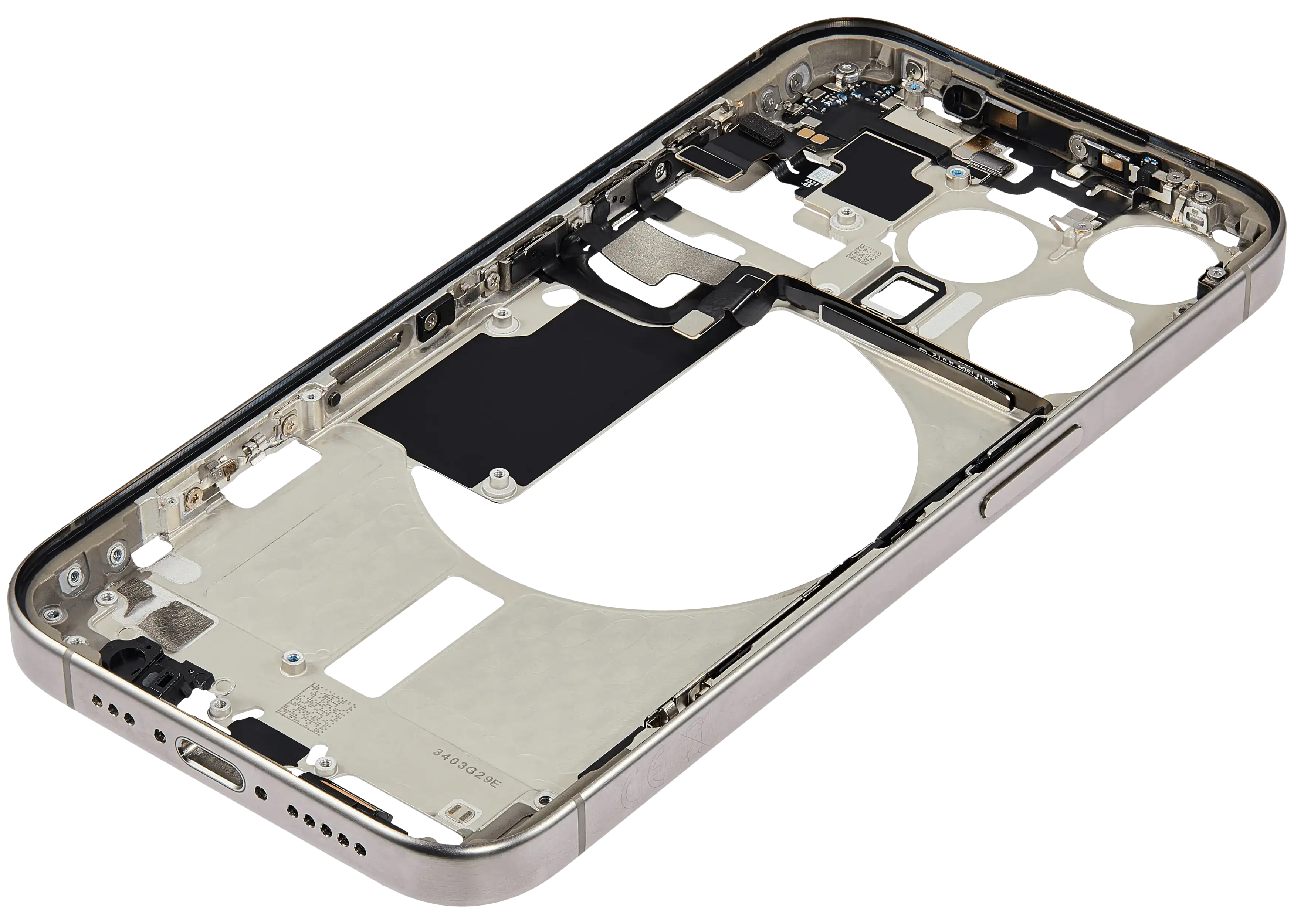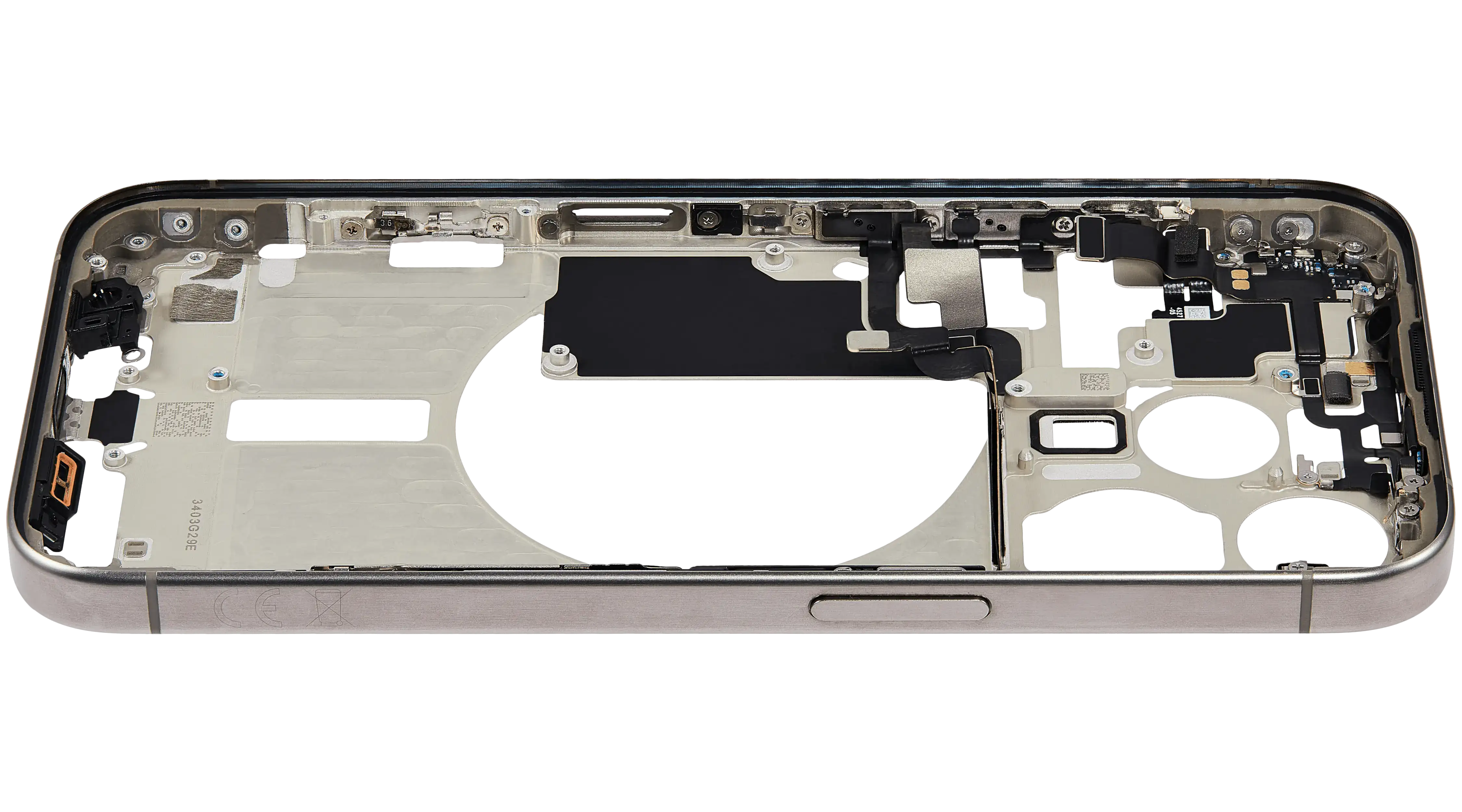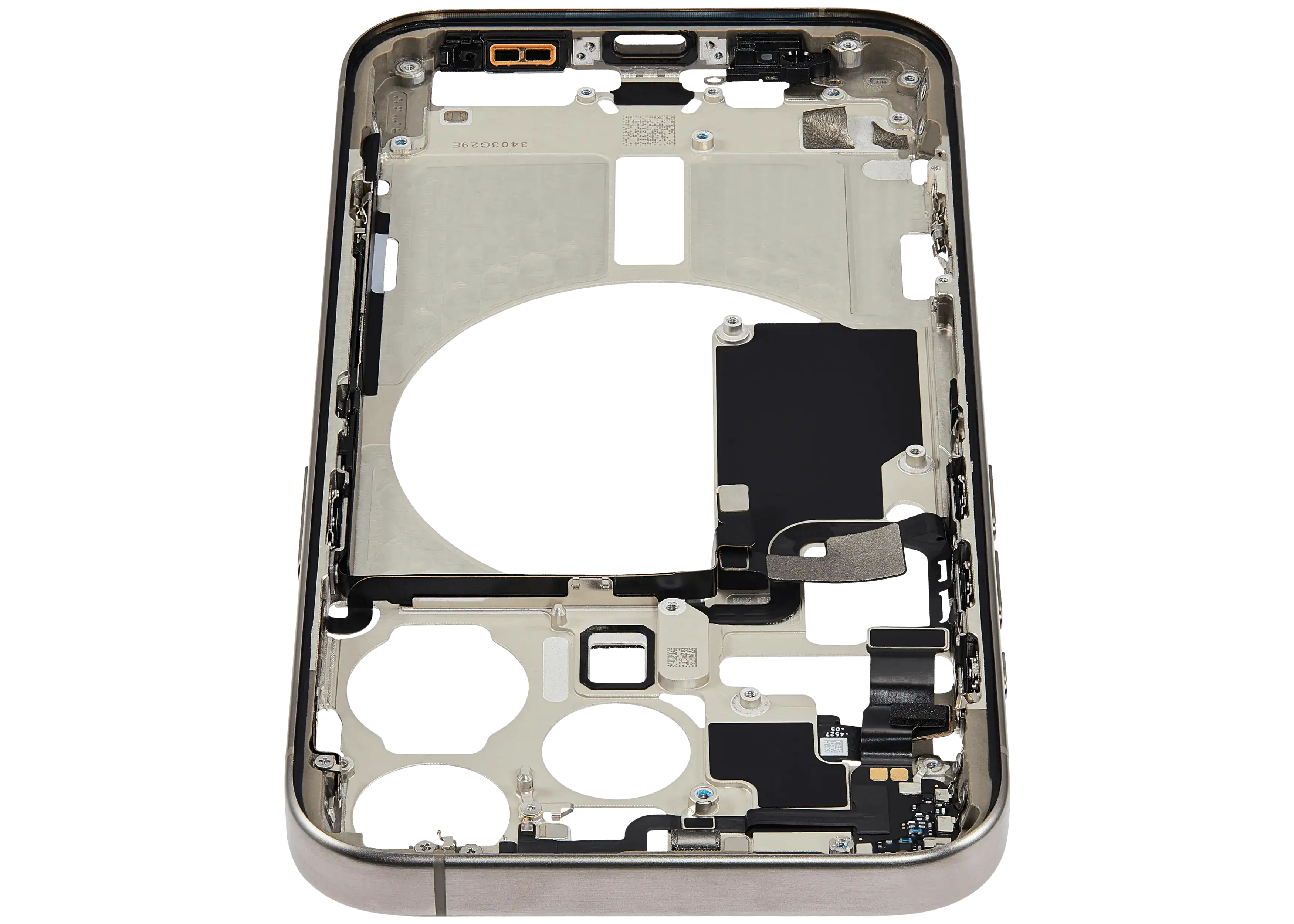 Mid-Frame Housing W/ Small Parts For iPhone 15 Pro (EU / Global Version) (Used OEM Pull: Grade B) (Natural Titanium)