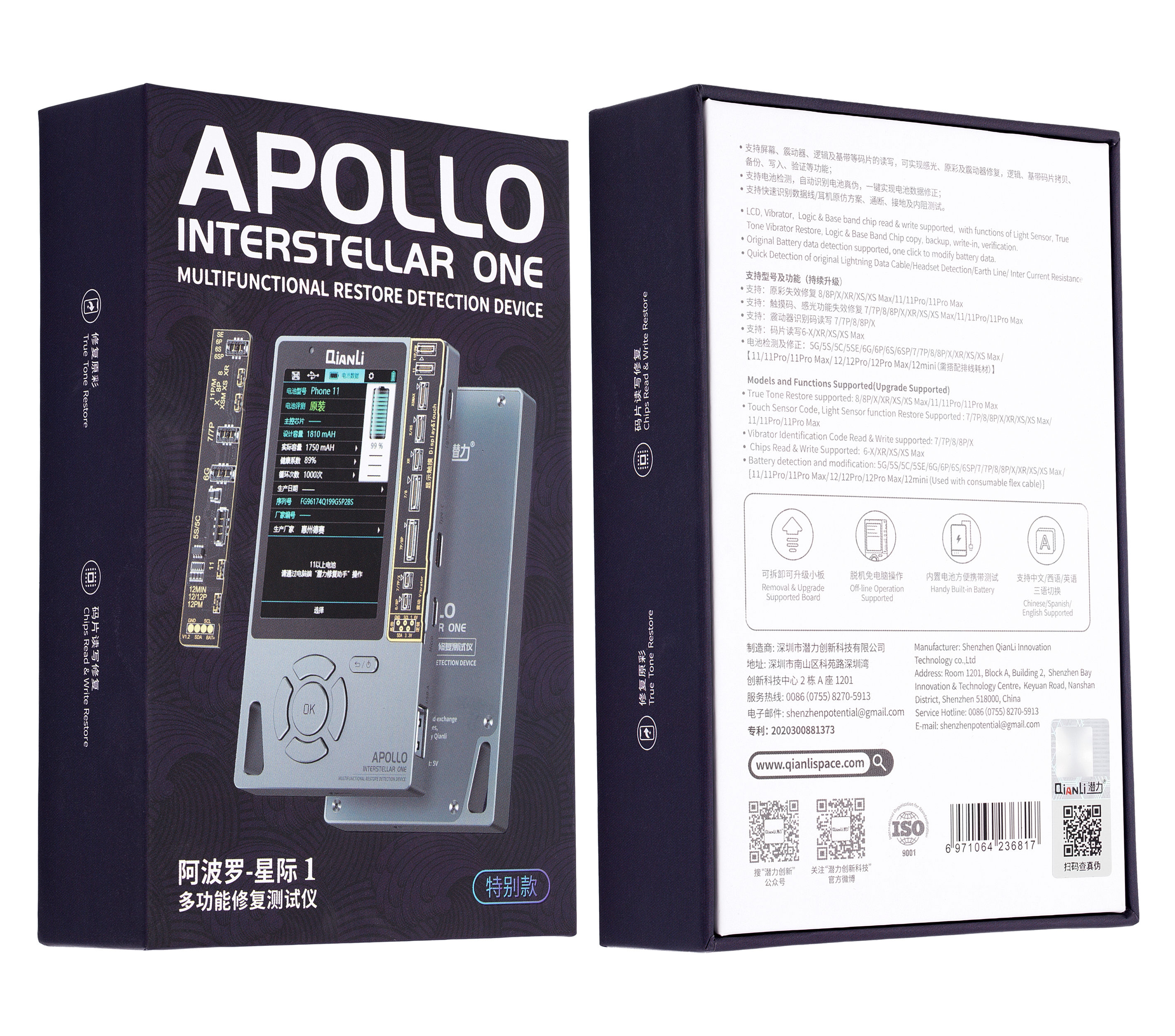 Apollo Interstellar Restore Program And Reading Device (True Tone / Battery Data / Vibrator / MFI Tester / EEPROM Programmer) (Display Up To 11 Pro Max And Battery Up To iPhone 14 Pro Max) (Galaxy Gray Special Edition) (Qianli)