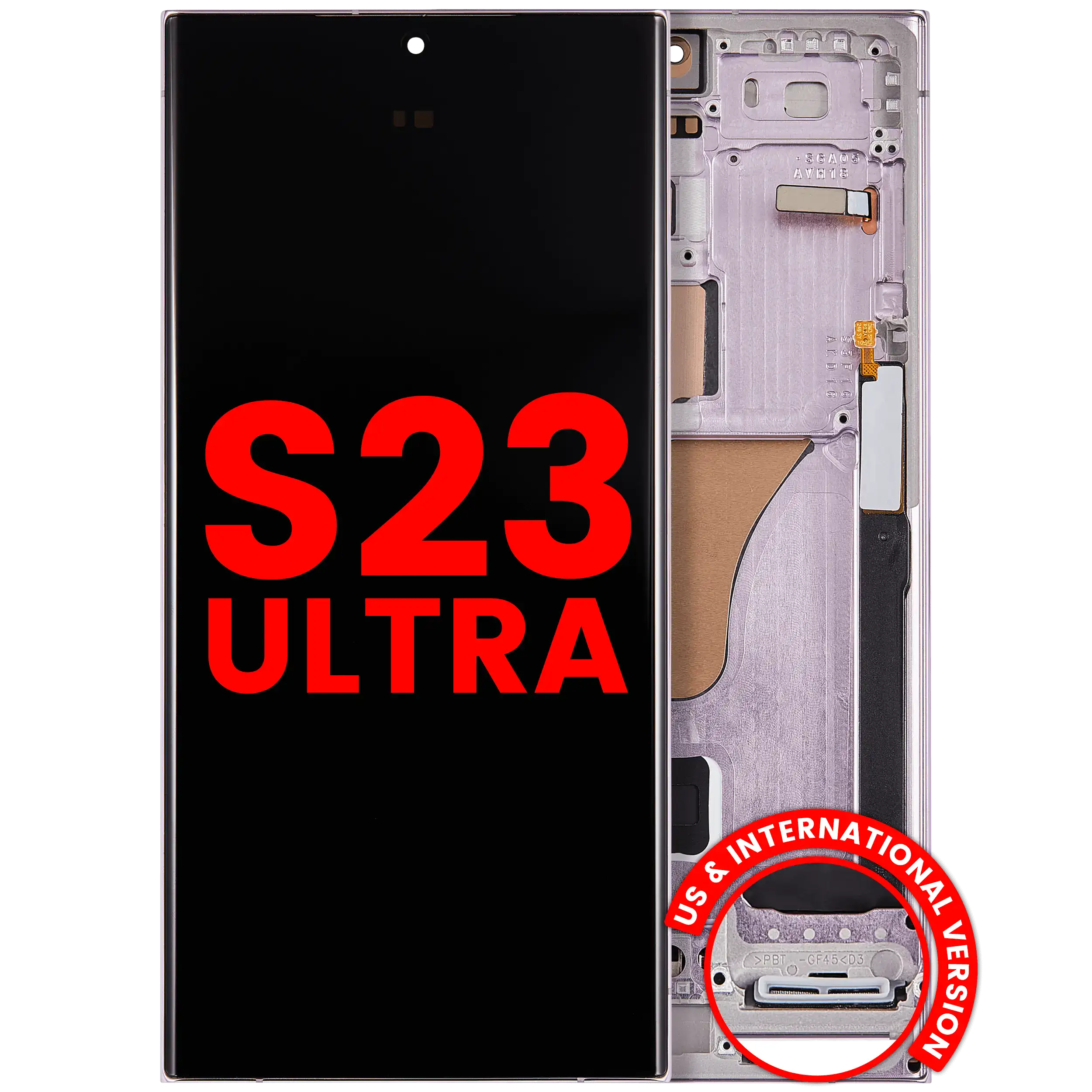 • Best quality Samsung Galaxy S23 Ultra OLED screen replacement with frame (US & International) (Aftermarket Plus) (Lavender).