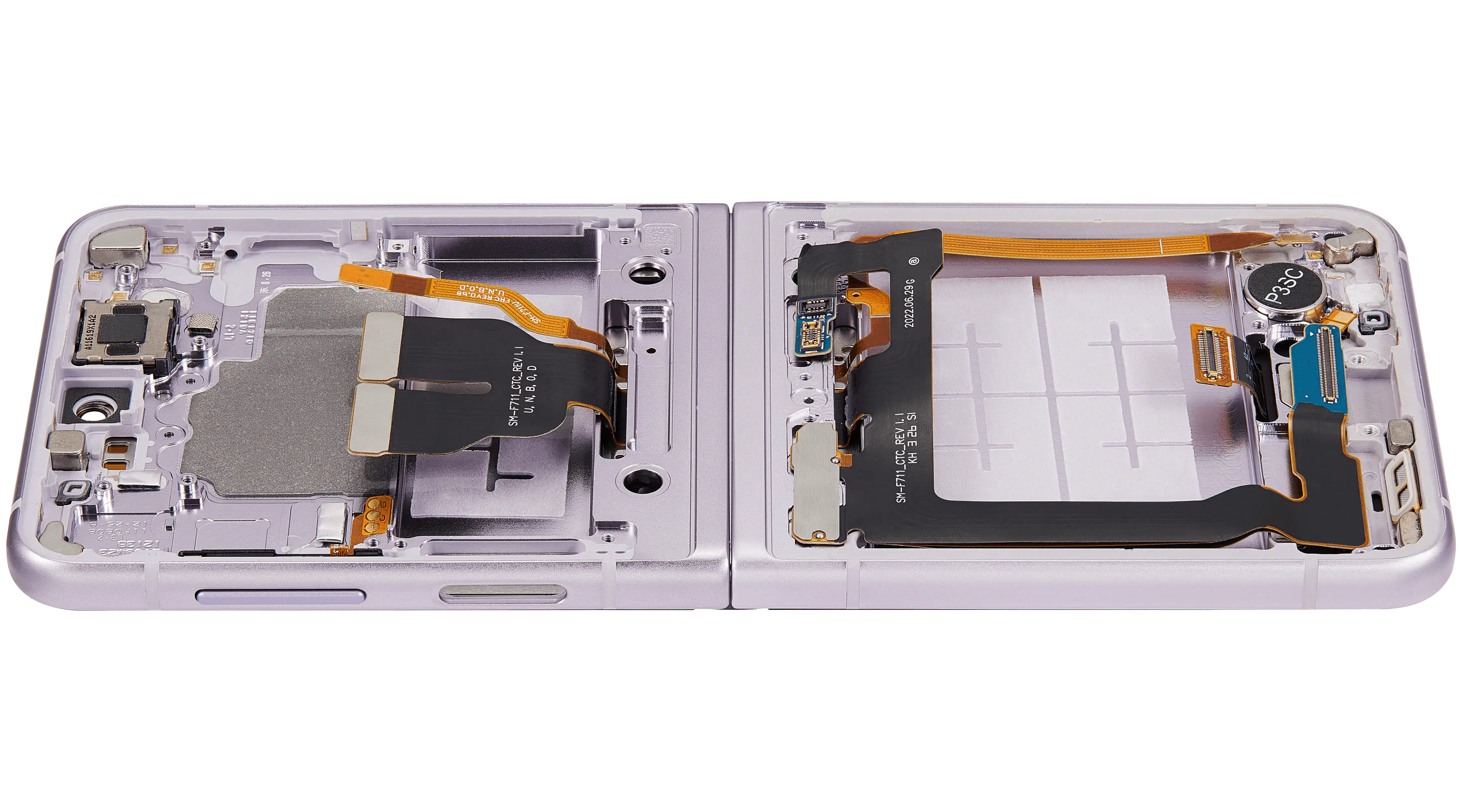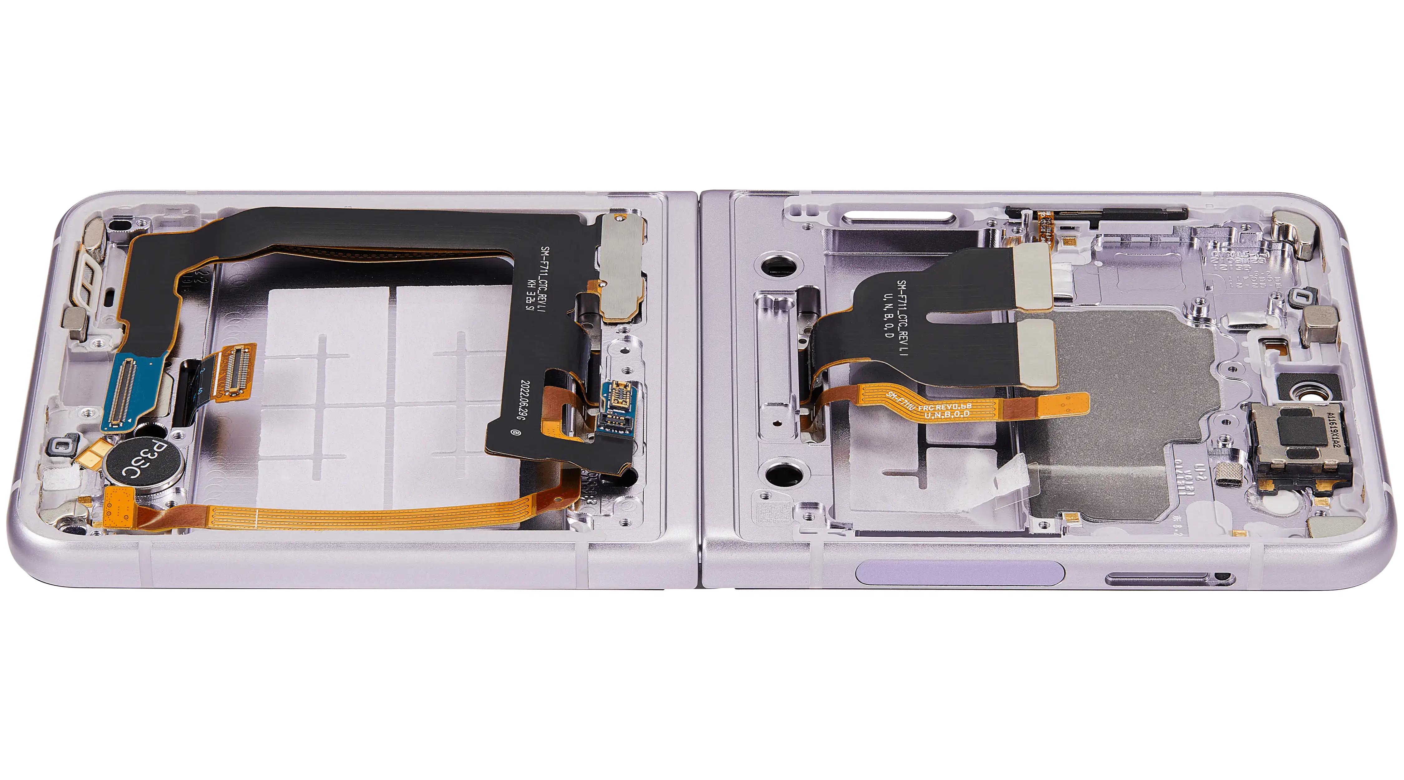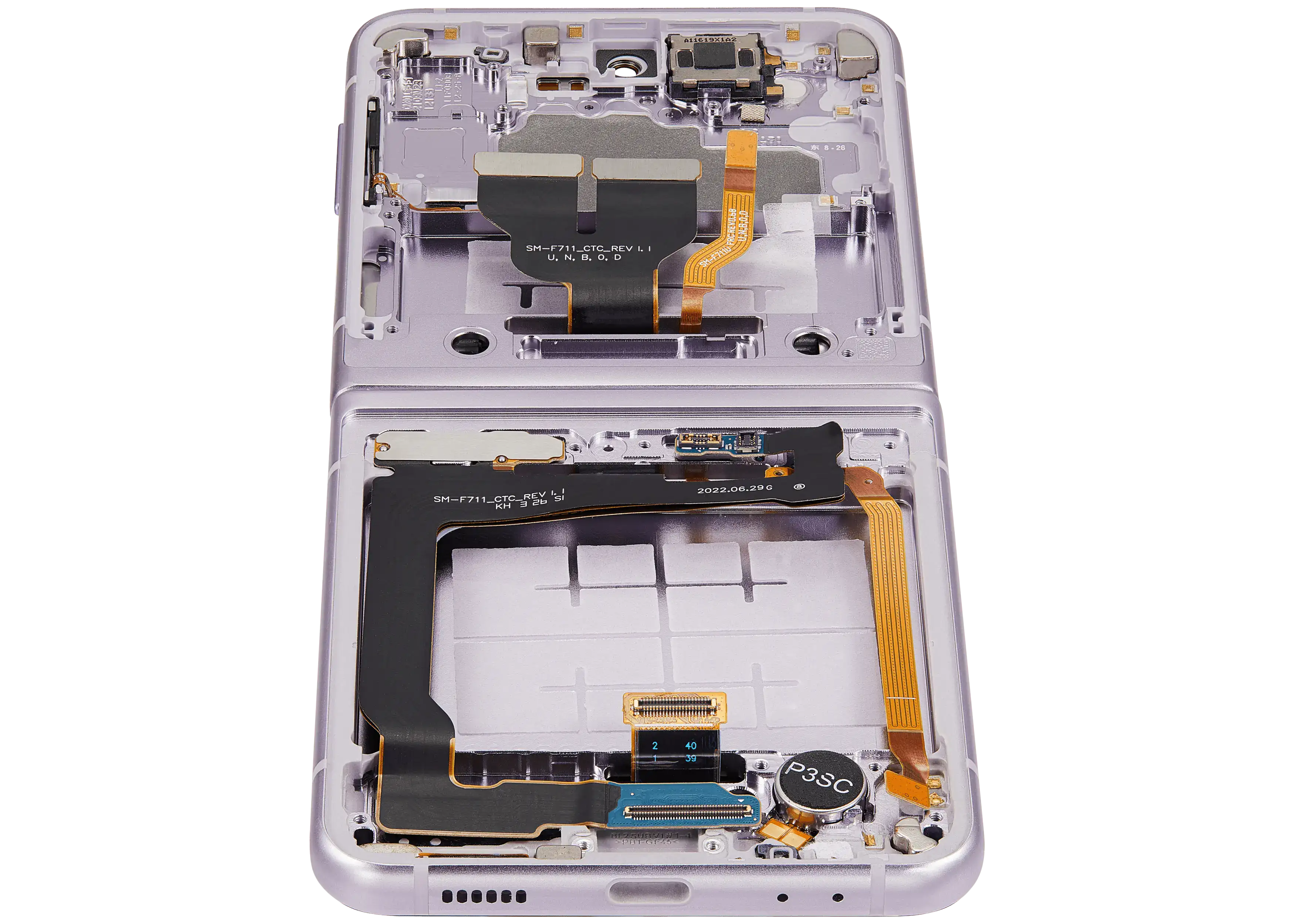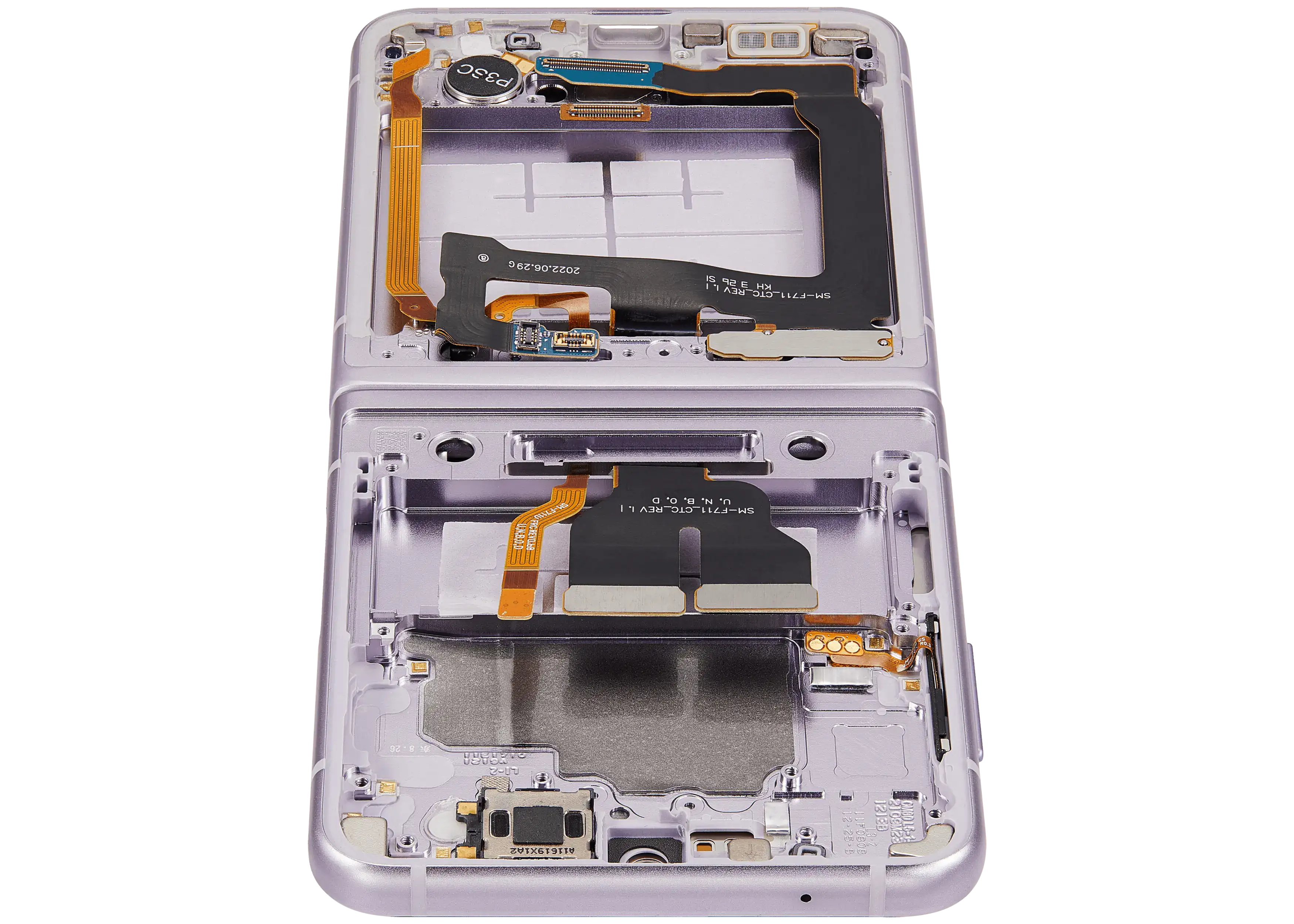• High quality Inner OLED Assembly with frame replacement for Samsung Galaxy Z Flip 3 5G (US & International Version) (Refurbished) (Lavender).